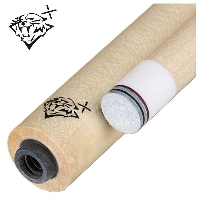5/16 x 14 SP Collar Tiger X Shaft 13mm. This is a better version of any conventional solid Maple shaft. It offers normal deflection as most Maple shafts do, but with much better performance and accuracy. It gives the player radial consistency, a solid hit and feel with added power. It would be the best choice for those who prefer to use masse shots when and opportunity allows. It takes everything a normal shaft can offer and does it much better and more consistent. This shaft has a 13.00 mm tip size 15 pro taper and ½ Saber-T ferrule and Sniper laminated tip.