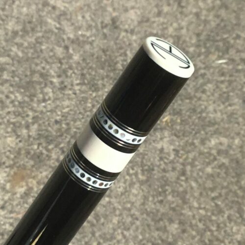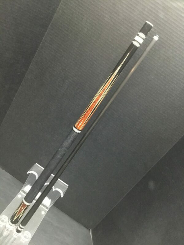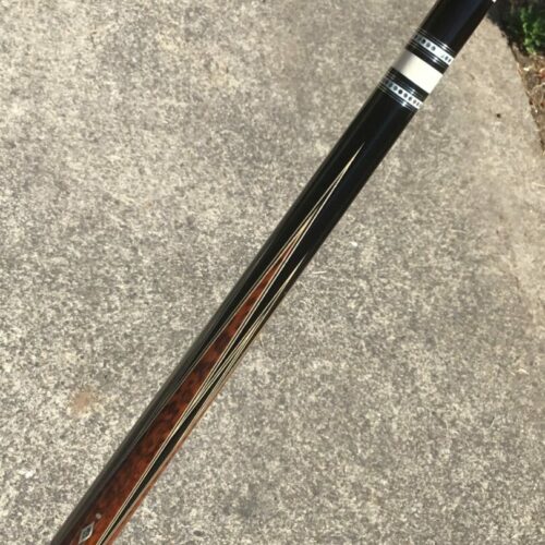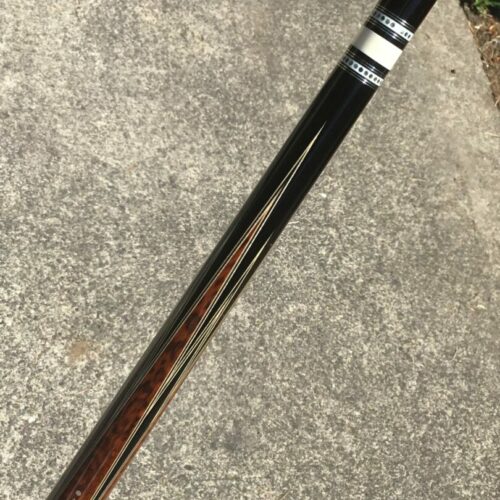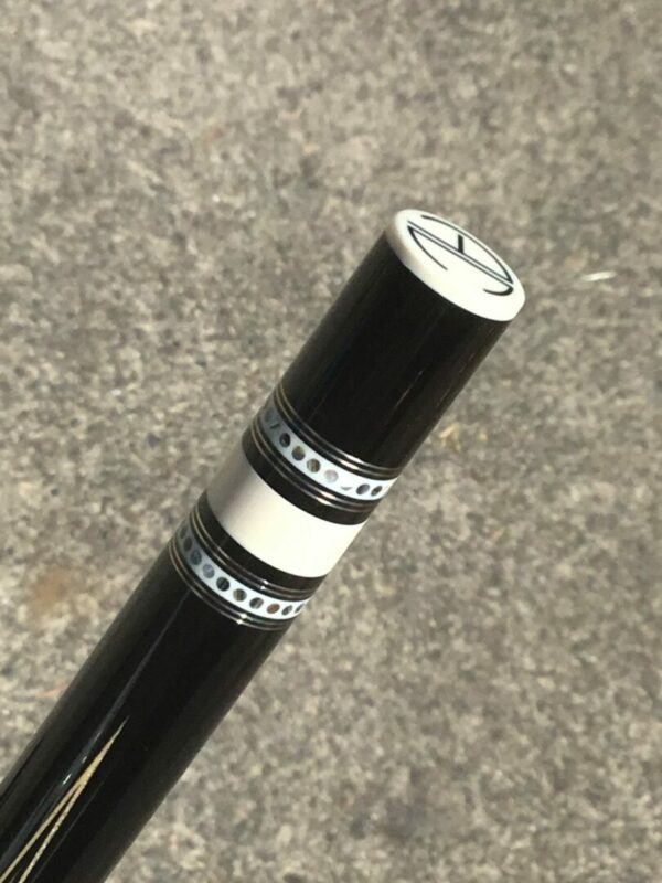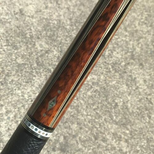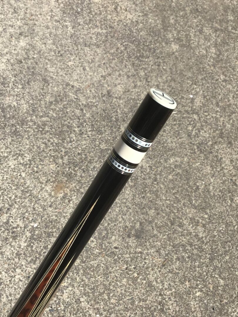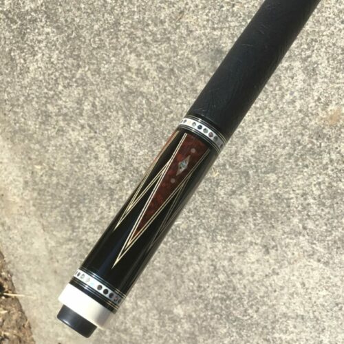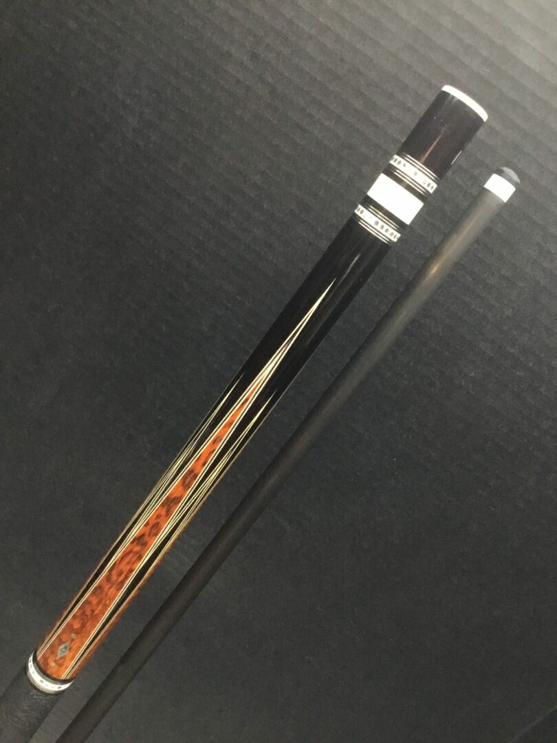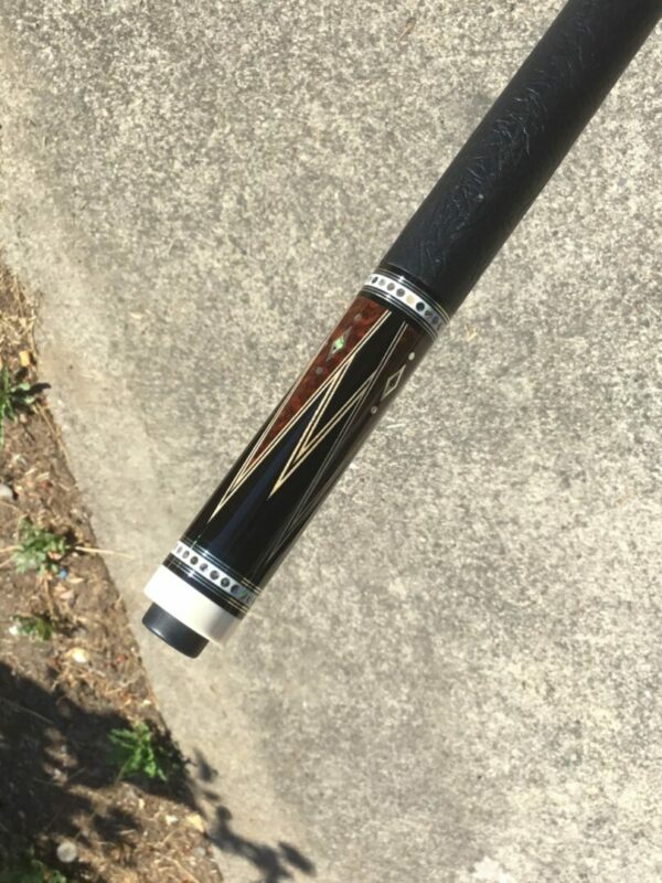 Here we have an incredibly amazing Ariel Carmeli cue with Ed Prewitt tribute ringwork. This is one loaded and sexy piece of work with high-low snakewood points in ebony complimented by beautiful abalone inlays. This cue does NOT disappoint in any way!!