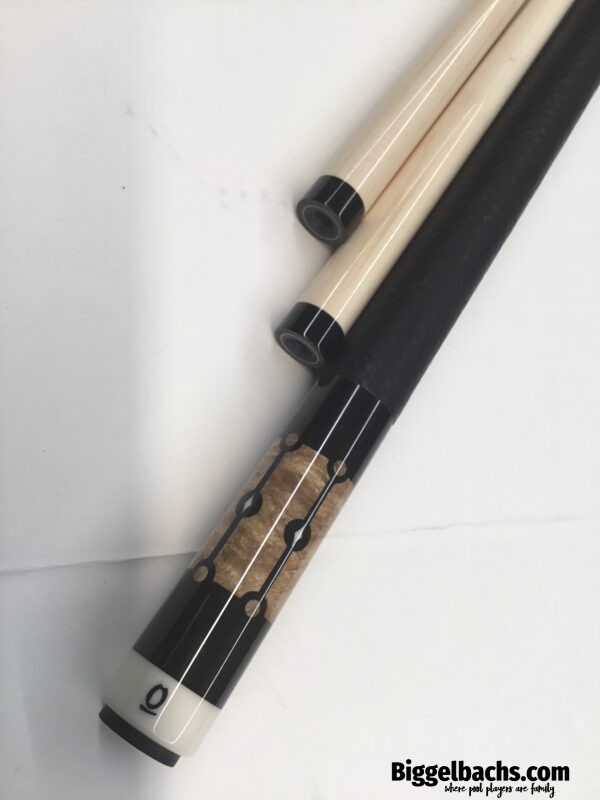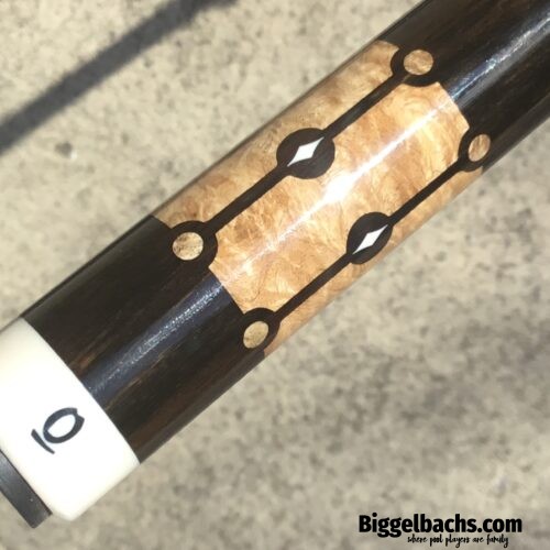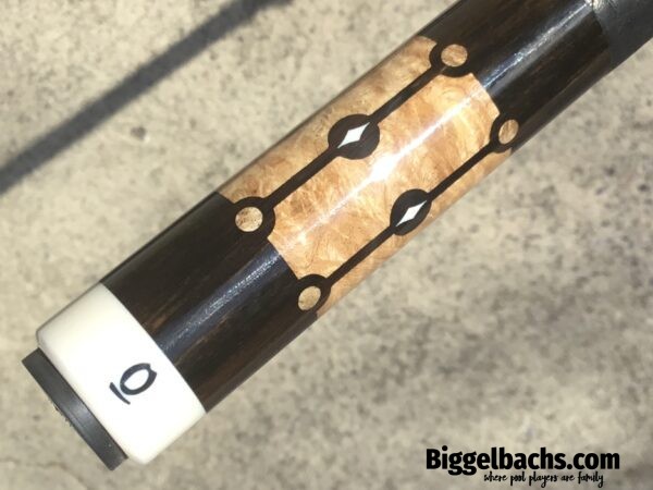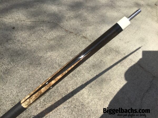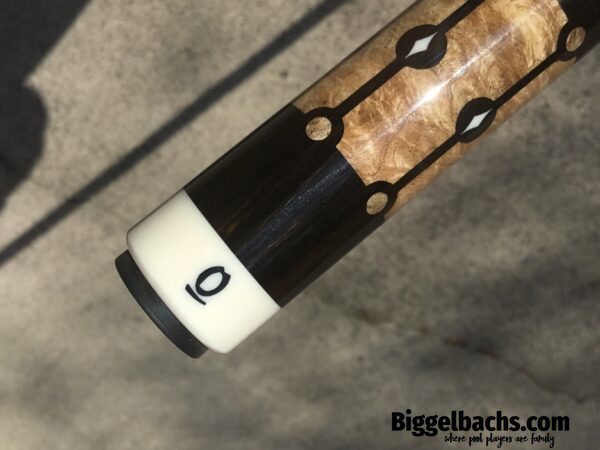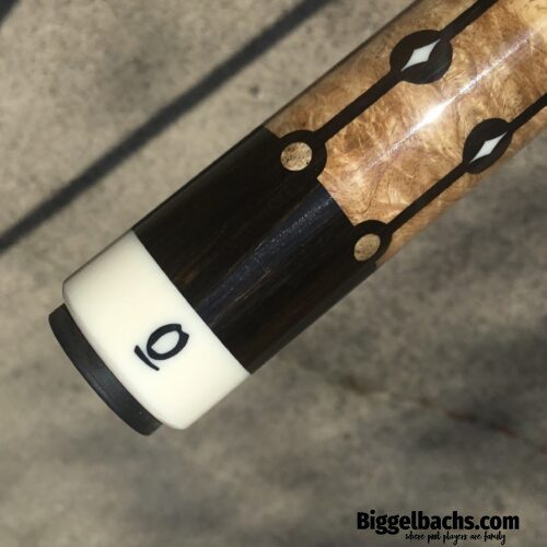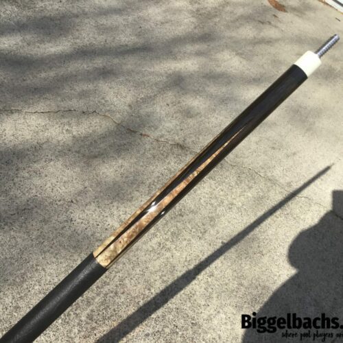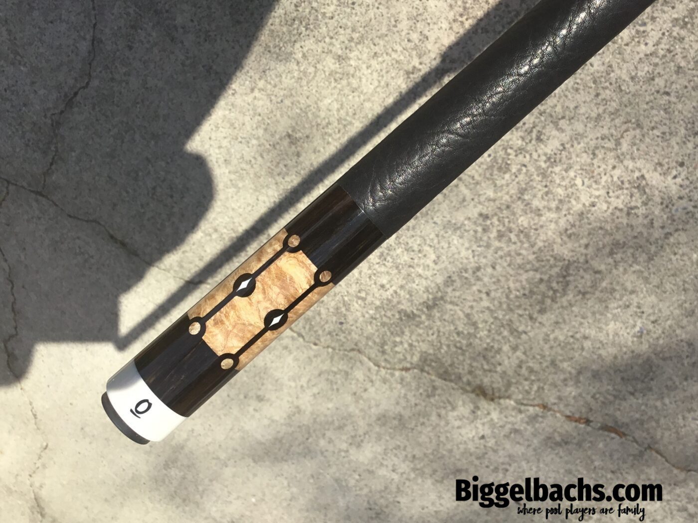 Arthur custom cues delivers again! This Gabon ebony build paired with Golden Amboyna burl points is extraordinary! The delicate inlays compliment the design to perfection. Not only is this cue stunning to look at, it is built ready to win matches! Outfitted with a soft Bison leather wrap, buttcap and joint of white supertusk, it also comes complete with extension.