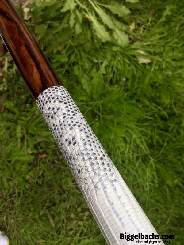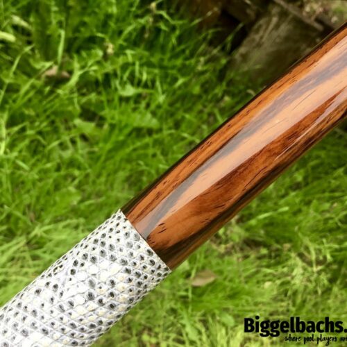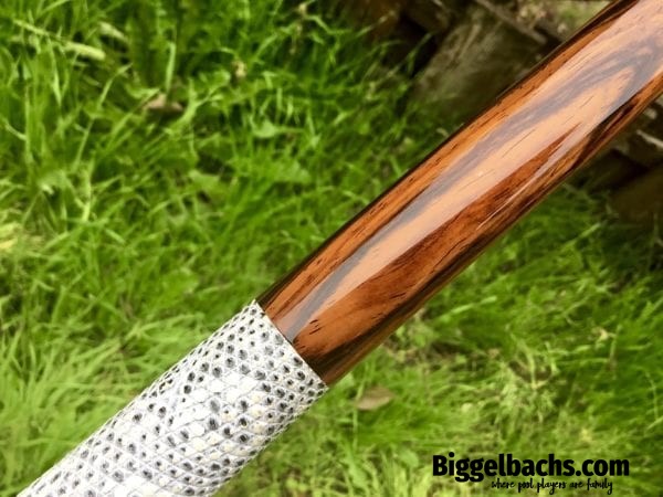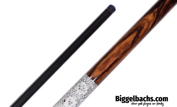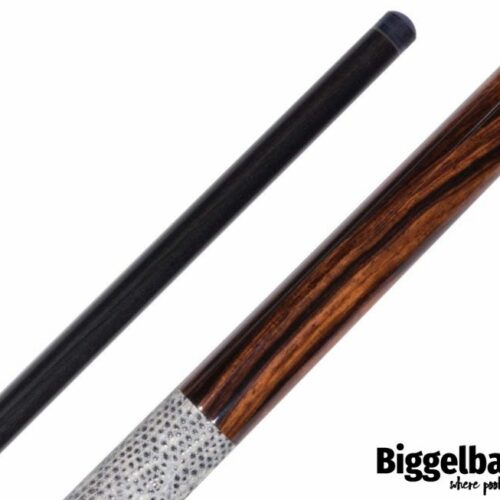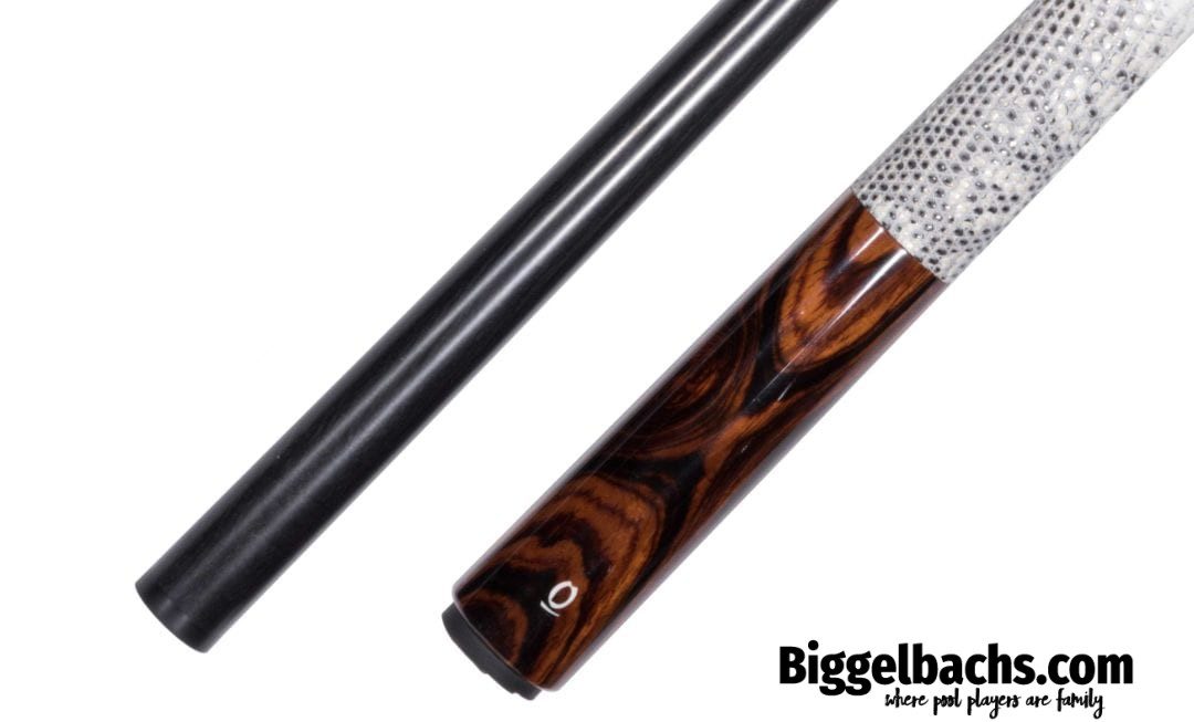 This Arthur cue is made with highly figured exotic Cocobolo wood with an exotic Snakeskin wrap. Stunning in its simplicity, this German-made cue will not disappoint!