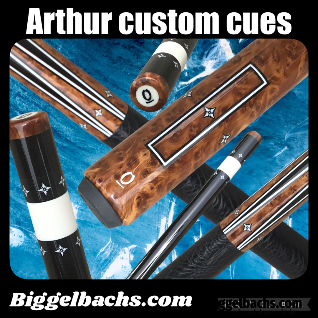 Tags: Arthur, Biggelbachs, Custom Cues, custom pool cue, hand made pool cues