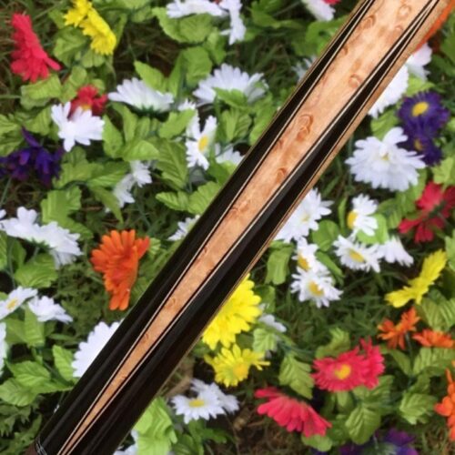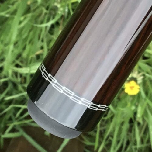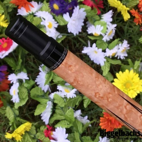 To get this cue maker’s cues is like finding a needle in a haystack!! With the nickname “Lord of the Rings” it all makes sense. Mr. Barenbrugge’s cues are in high demand these days. This cue has 4 cocobolo points in a nicely figured birds eye maple forearm. This cue would slip into anyone’s collection without too much complaining.