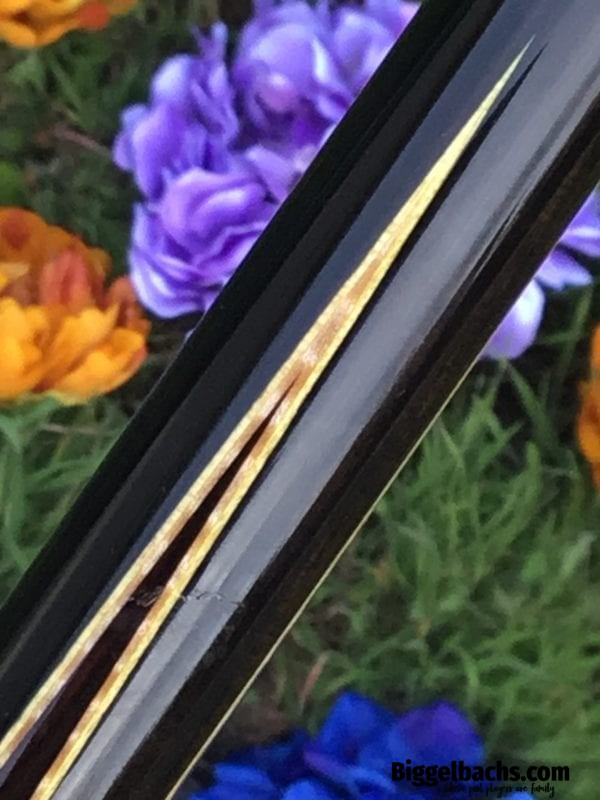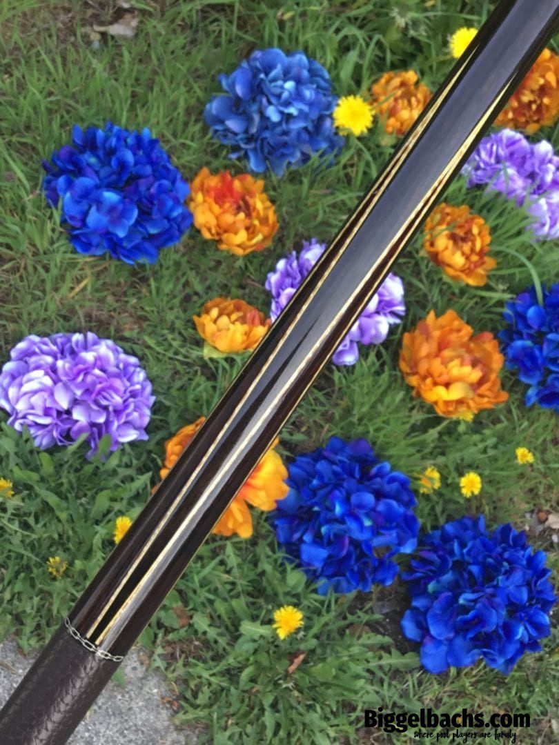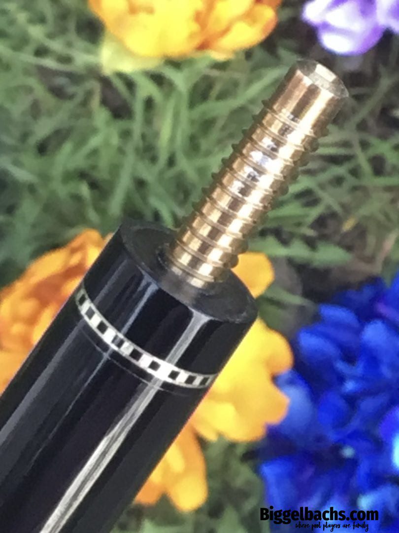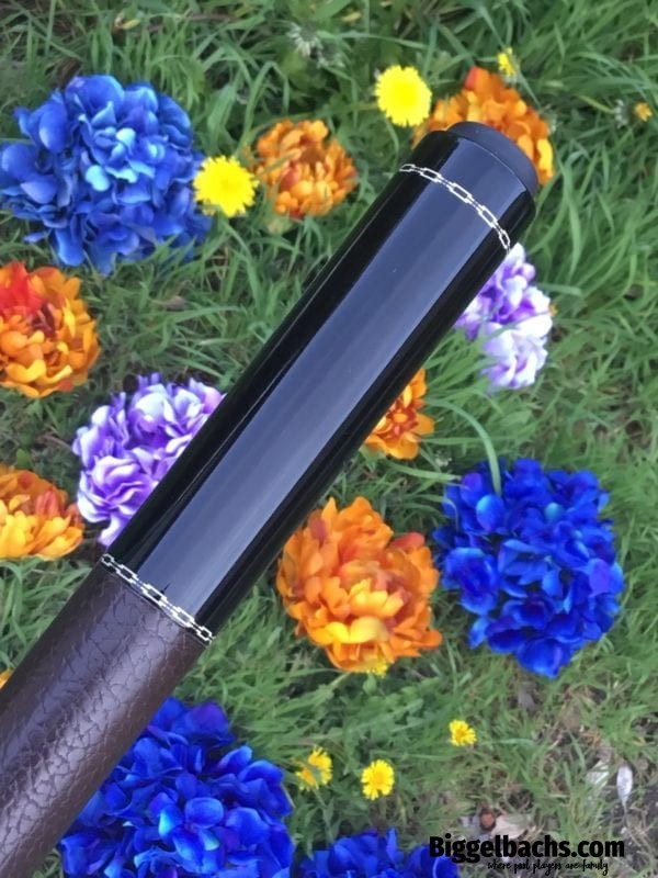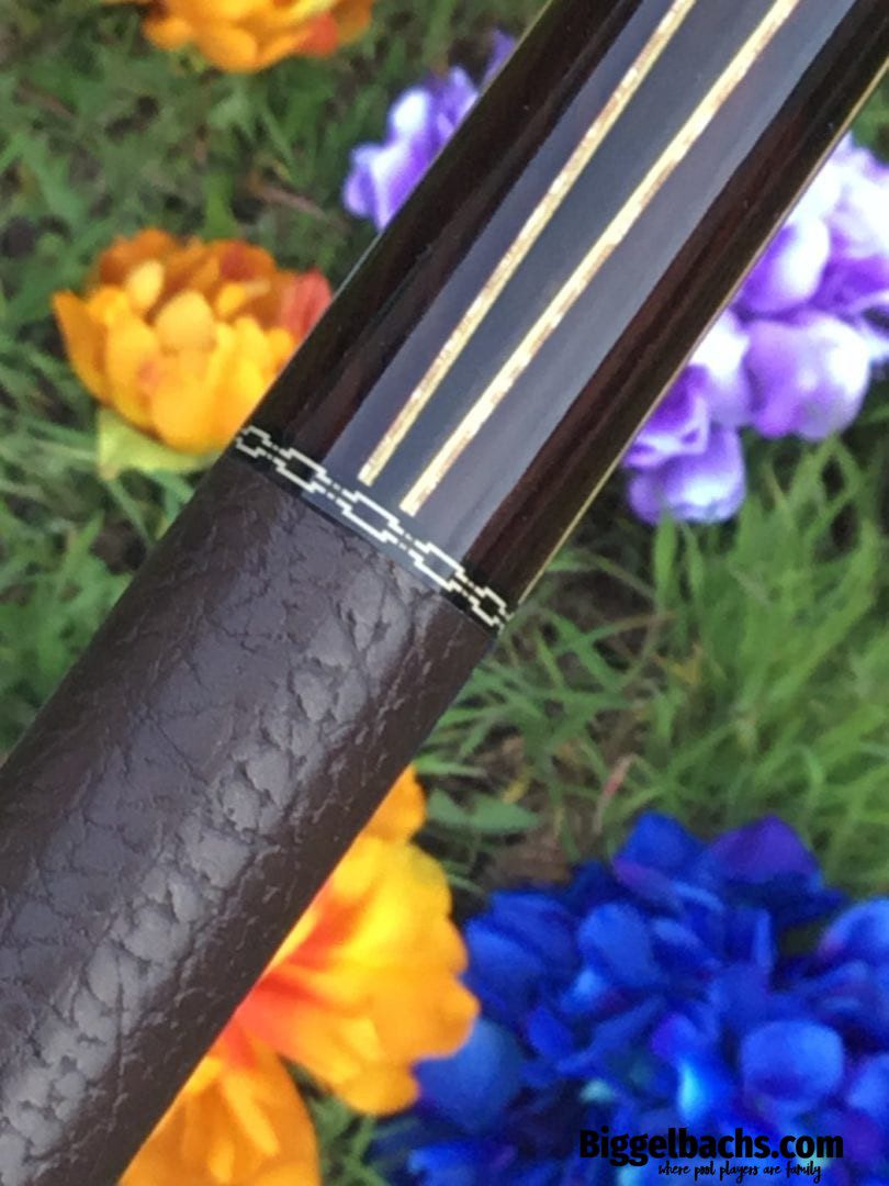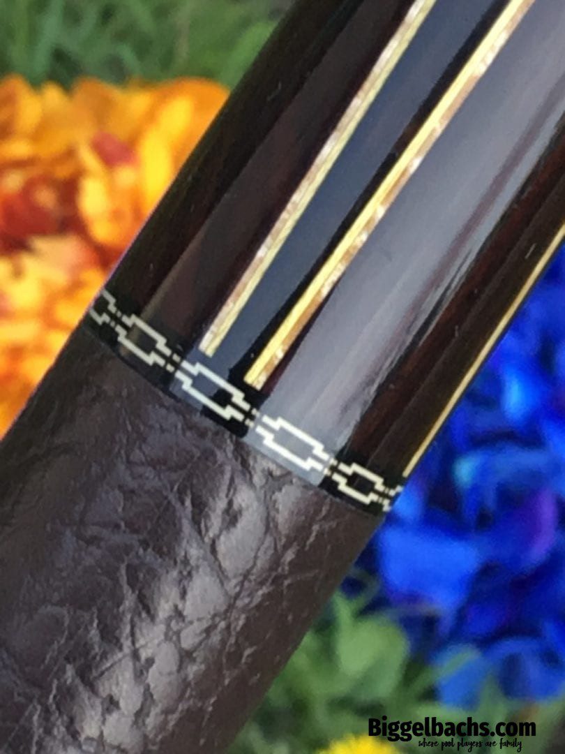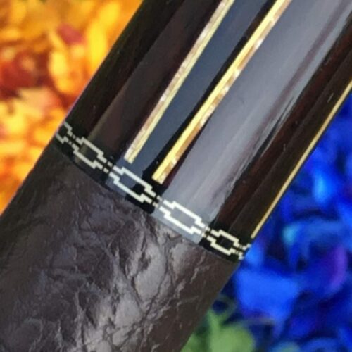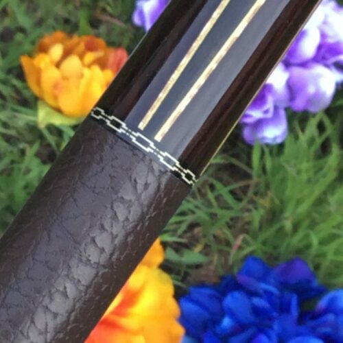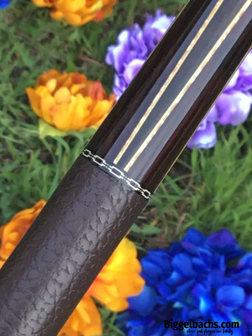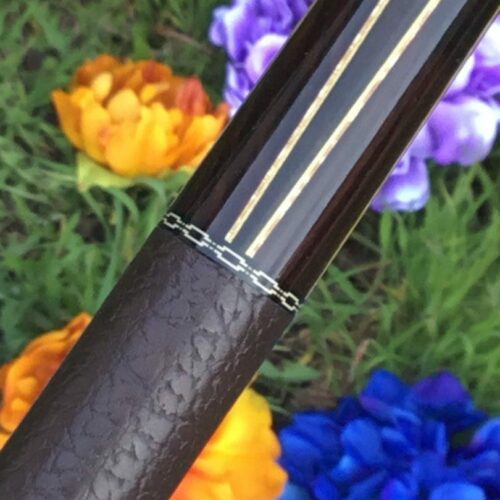 Hard to find ebony forearm by Dave Barenbrugge. Beautiful Brown leather wrap and rings at all points. Three re-cut points in this rare cue.