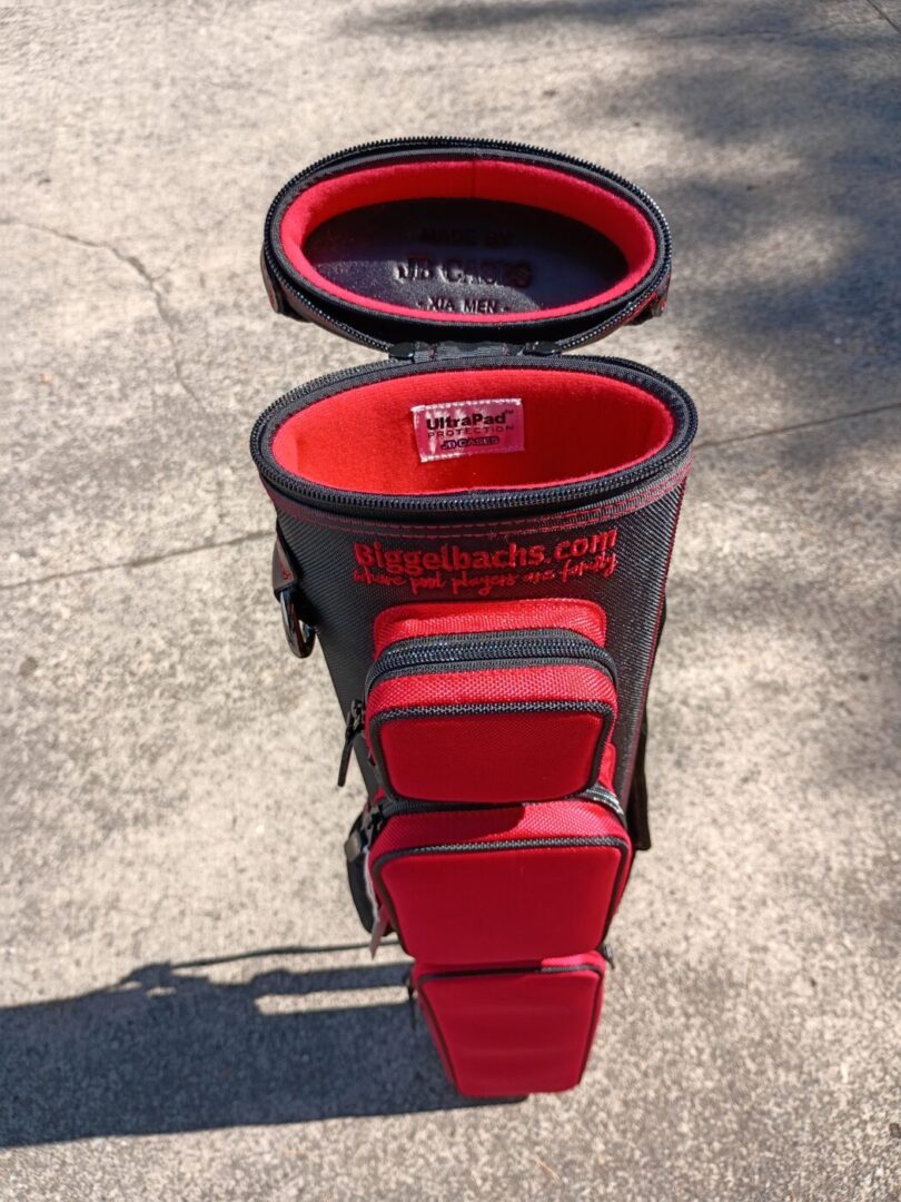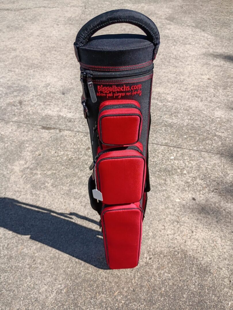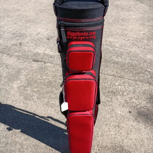 This case holds 2 butts and 4 shafts. Maximum interior length capacity is 32.5″. This case is made of durable nylon/polyester material with reinforced leather stress points. Features an UltraPad interior and very comfortable handles. Has a heavy-duty rubber bottom, featuring a non-slip well-padded suede leather shoulder strap. Zippers are the highest quality available and each zipper has two pulls in case one should break. Three roomy pockets for easy access to your essentials. Black stitching, Black Zipper Pulls, Towel Ring, Backpack straps.