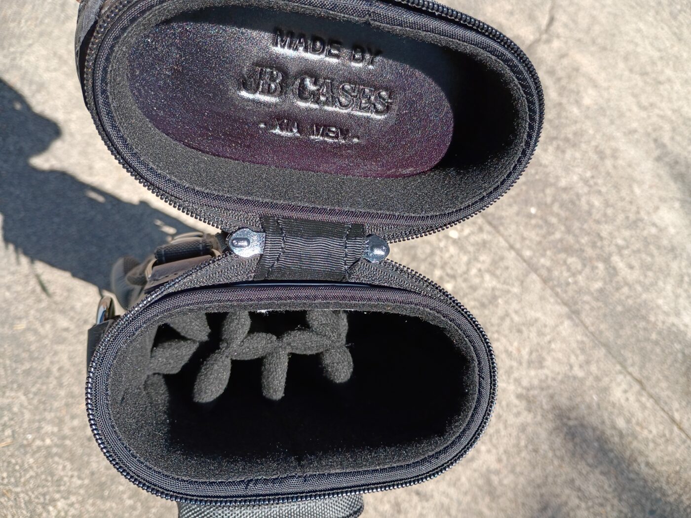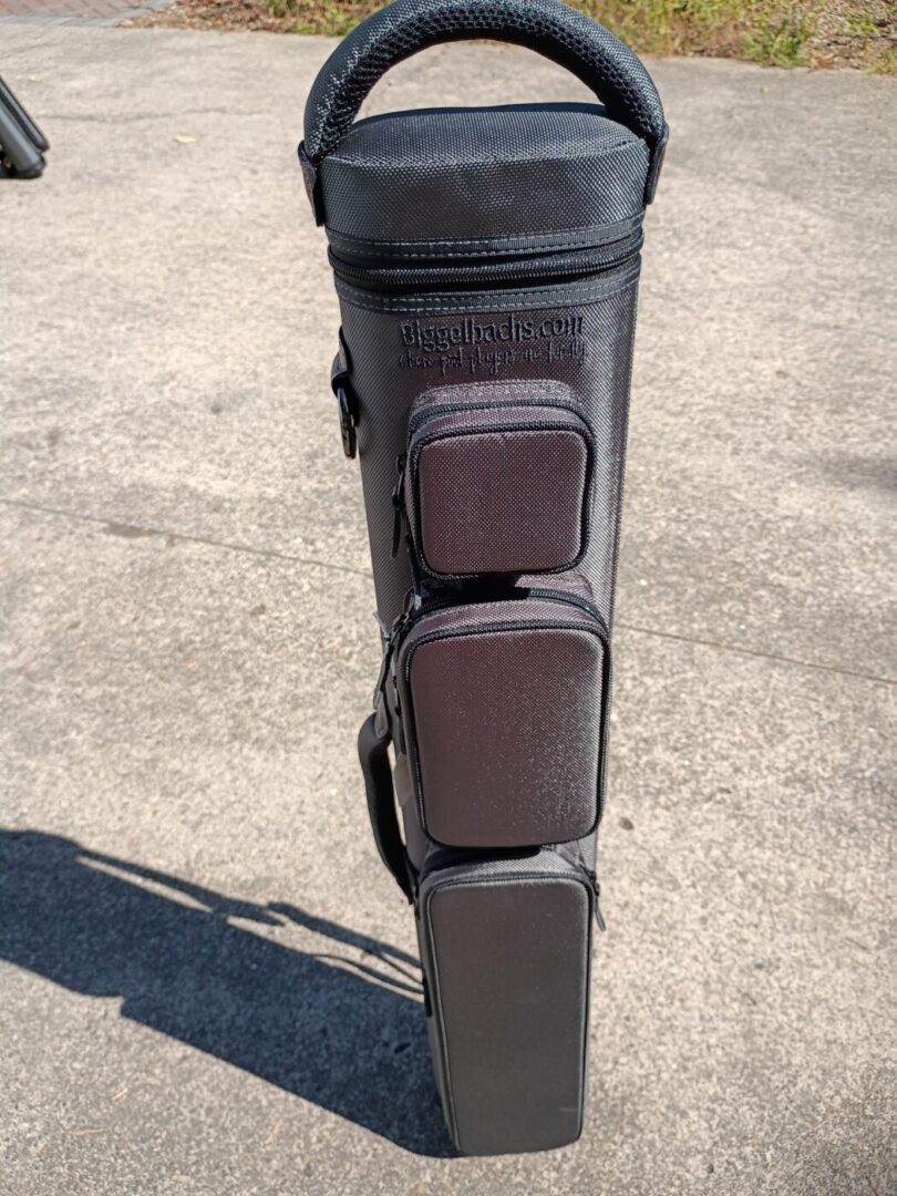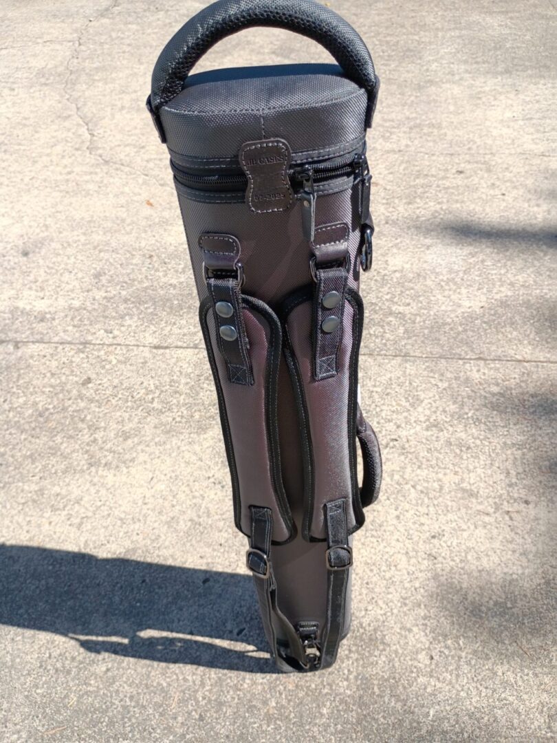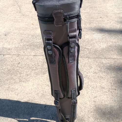 This case holds 3 butts and 6 shafts. Maximum interior length capacity is 32.5″. This case is made of durable nylon/polyester material with reinforced leather stress points. Features an UltraPad interior and very comfortable handles. Has a heavy-duty rubber bottom, featuring a non-slip well-padded suede leather shoulder strap. Zippers are the highest quality available and each zipper has two pulls in case one should break. Three roomy pockets for easy access to your essentials. Black stitching, Black Zipper Pulls, Towel Ring, Backpack straps.