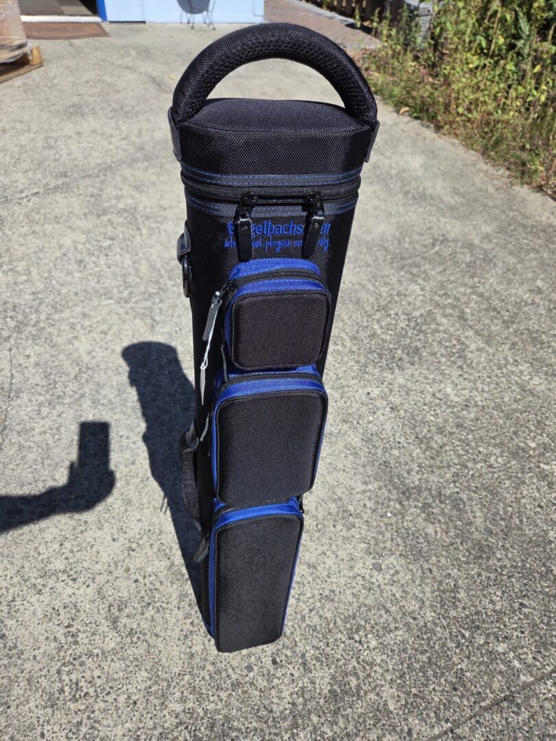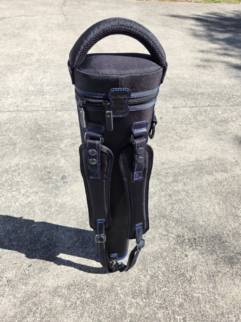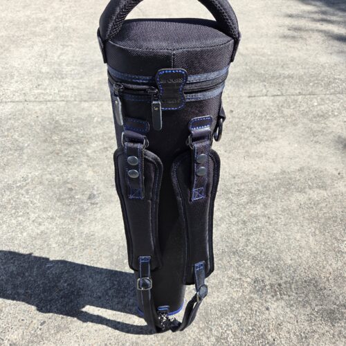 This case holds 4 butts and 8 shafts. Maximum interior length capacity is 32.5″. This case is made of durable nylon/polyester material with reinforced leather stress points. Features an UltraPad interior and very comfortable handles. Has a heavy-duty rubber bottom, featuring a non-slip well-padded suede leather shoulder strap. Zippers are the highest quality available and each zipper has two pulls in case one should break. Three roomy pockets for easy access to your essentials. Blue stitching, Black Zipper Pulls, Towel Ring, Backpack straps.