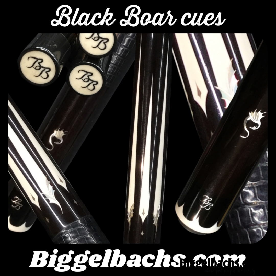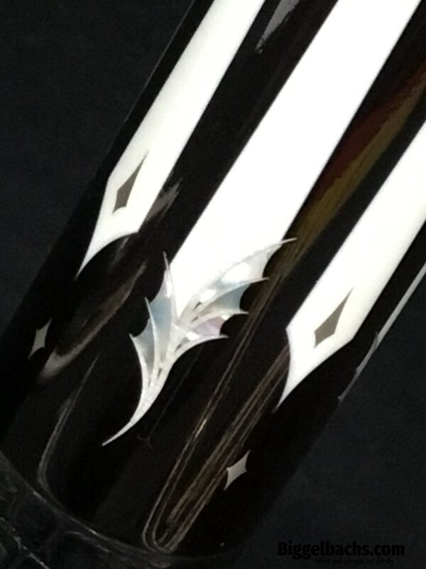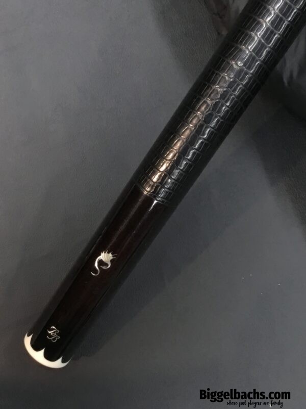 A rare find indeed. A Black Boar can easily be the coveted center piece of any cue collection and this is no exception! Nicknamed “The Dragon” this cue is ebony with 8 natural material and silver points with delicate inlays in the butt as well. It’s a challenge to capture all the beauty of this piece in pictures, but the close ups definitely show some good details!