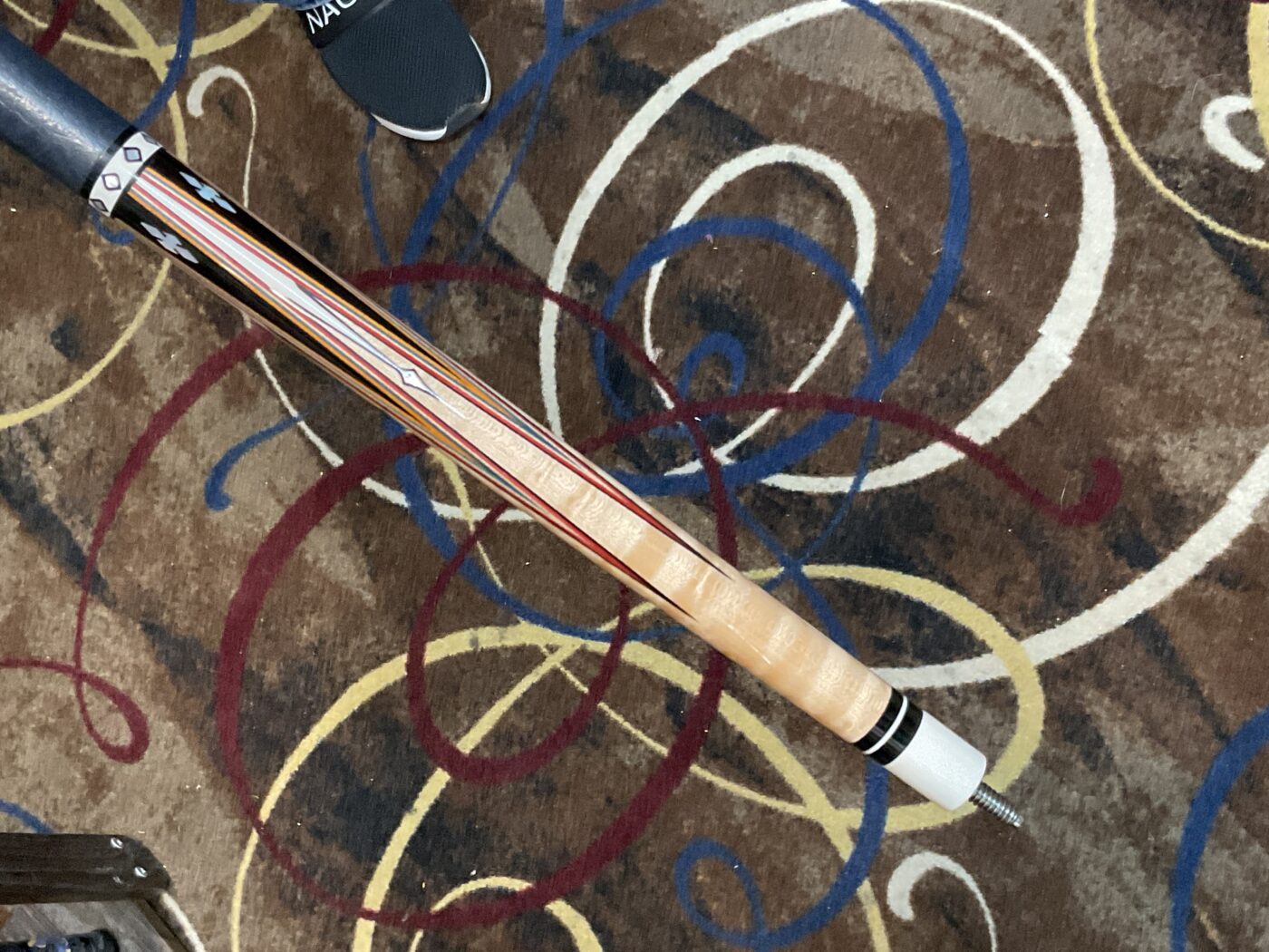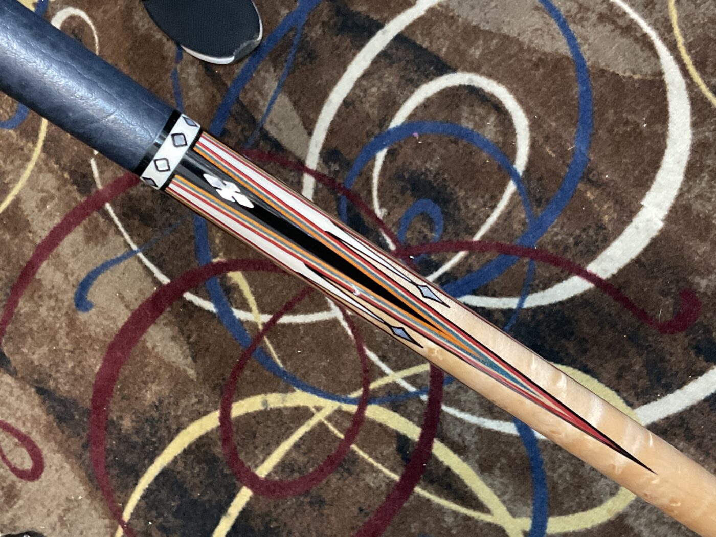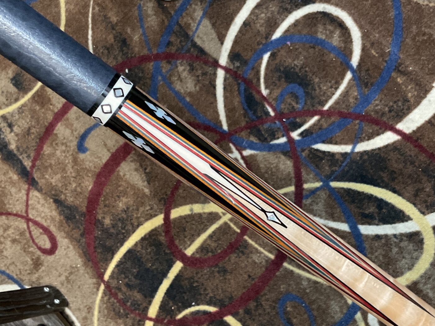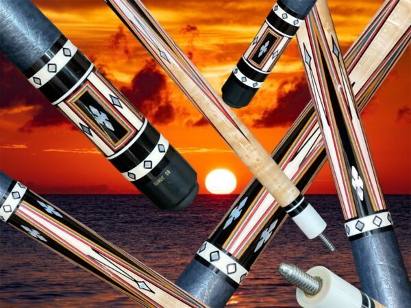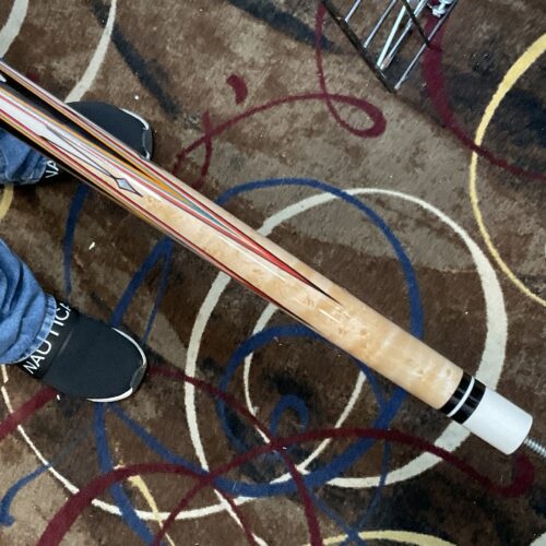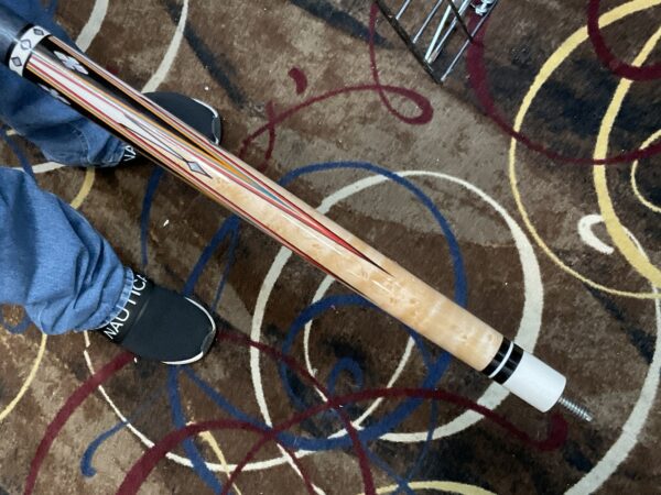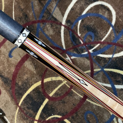 Bob Runde is known for his excellent craftsmanship, and this cue is no exception. The red and orange veneers on top of Ebony points make this cue really stand out. It has 4 standard size points along with 4 smaller size points. His choice of maple used in the forearm makes it stand out even more.
