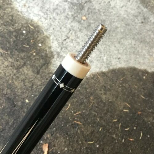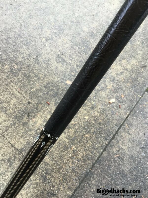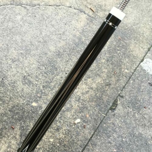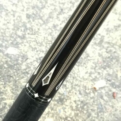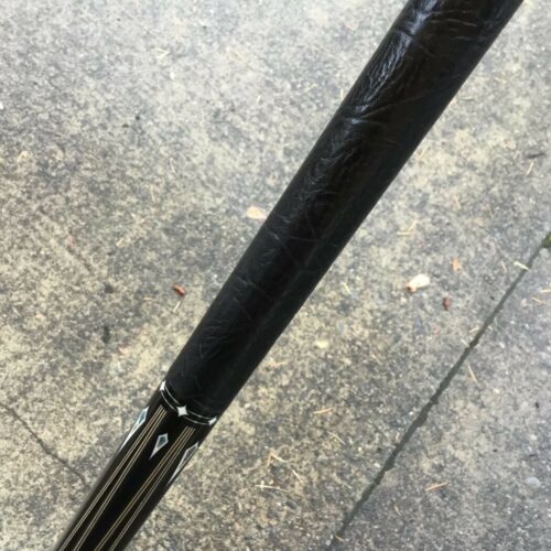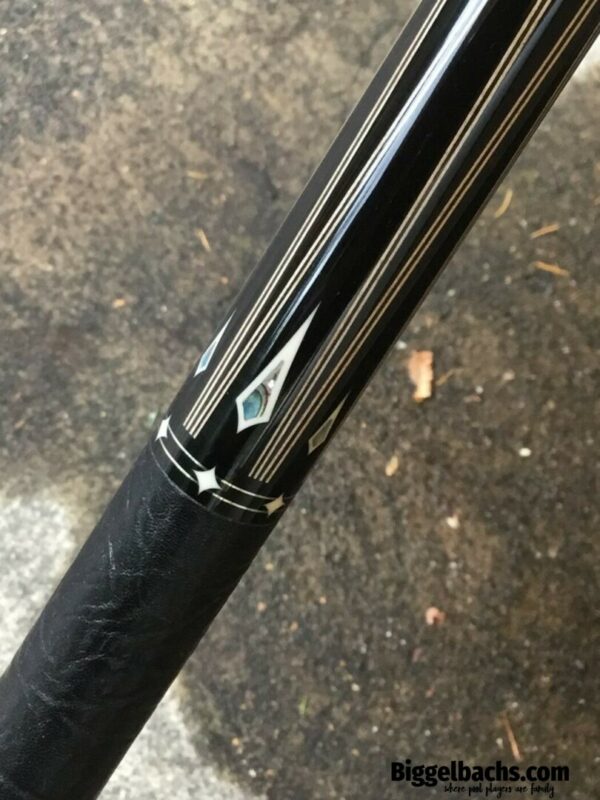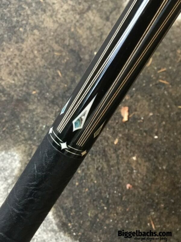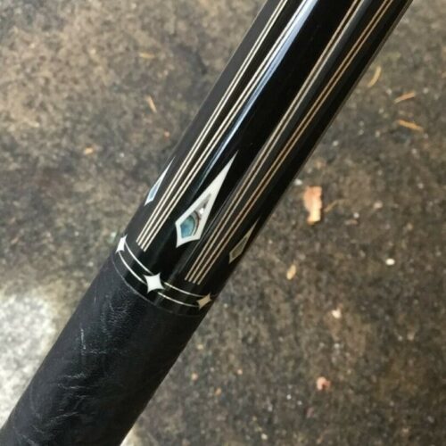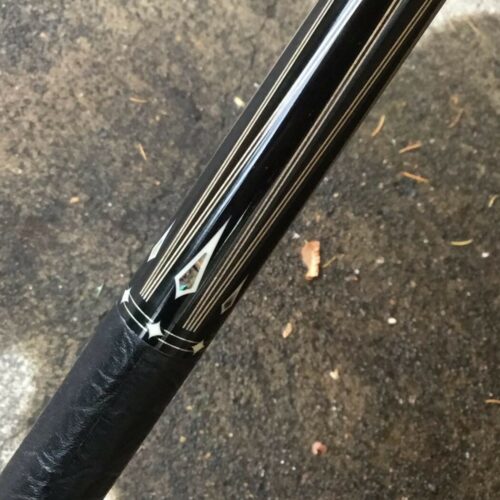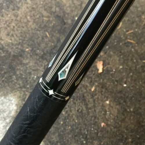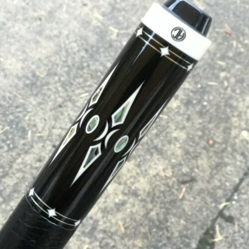 Ravishing ebony cue by Ariel Carmeli. This design with abalone framed inlays, white accents and a Spanish bull leather wrap is simply incredible! As is the case with most of our inventory that is not brand new, this cue is in like new condition and ready to be shown off in the pool room or in the collection! 37