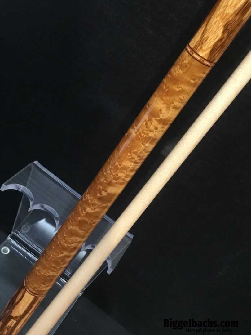Stunning wood once again makes this Merry Widow by Coos Cues a show stopper! Spalted maple and Birdseye maple make a beautiful combination in this very affordable cue!