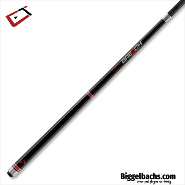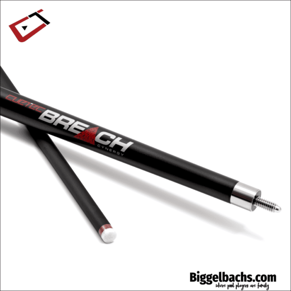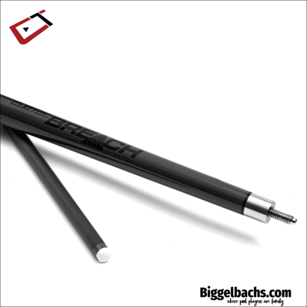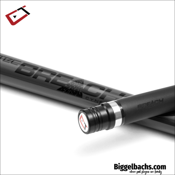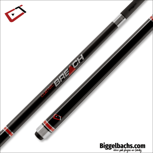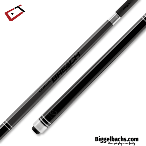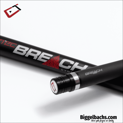 Cuetec Cynergy Breach Break Cue. Developed to provide devastating power. The Cynergy Breach break cue utilizes a 12.75mm carbon fiber composite break shaft engineered to deliver more energy for your all-important opening salvo. Featuring a stiffer carbon fiber filament orientation, that is paired with a rock-solid phenolic ferrule and white Taom 2.0 break / jump tip. The Breach break cue arrives ready to annihilate the competition.