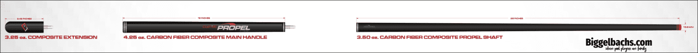Designed and developed to provide the most effortless and dynamic jumping experience, each and every component of a Propel jump cue was engineered for out-of-this-world performance. Featuring an all-composite construction and weighing in at an ultralight 11 ounces with it’s weighted extension attached, Propel jump cues not only excel at both full-table and close proximity jumps, but provide tremendous accuracy and eliminate unintended side spin thanks to their oversize 13.9mm tip diameter. Packed with Carbon Fiber technology in not only the shaft, but also the main handle, Propel jump cues transfer more energy than any other jump cue we have ever tested. Safe, just isn’t quite as safe when you have a Propel in your arsenal.