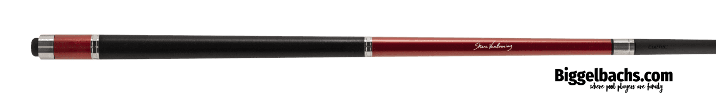 Cuetec Cynergy SVB Gen One Dakota Series Ruby Red Cue The SVB Ruby Red cue Dakota Series cue has a satin red grade A+ hard maple butt with black Irish linen wrap, stainless steel 3D rings, collars and butt cap. Completing this cue is Cynergy 15K high-performance carbon fiber composite shaft. Take your game to the next level with the same cue fielded by five-time U.S. Open Champion Shane Van Boening. Dakota Series cues come with matching cue extension and Bowtie tip tool