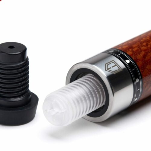 The Cuetec evolution continues with the next generation of Cynergy Truewood Series Cues. Featuring an all-new construction utilizing Cuetec’s Clear-Tec epoxy resin finish for increased stiffness and reduced vibration, every Truewood series cue is enveloped in exotic veneers surrounding a kiln-dried Canadian Maple core and is adorned with precision cut Truewood Shield rings. Available with the “Player’s Choice” of Cynergy 11.8 or 12.5 carbon fiber composite shaft, each Truewood Cue delivers unparalleled hit consistency and feedback.
