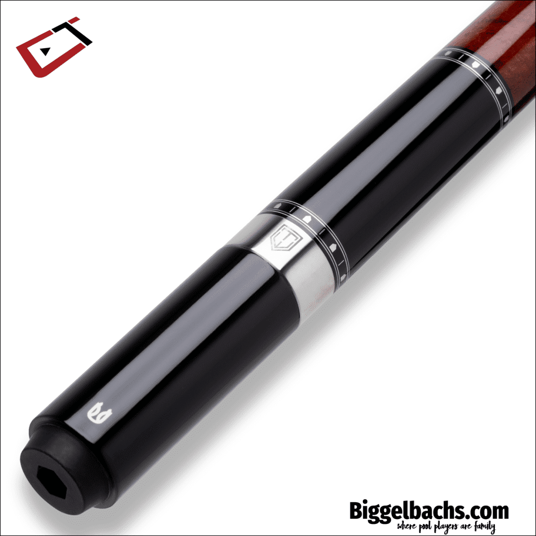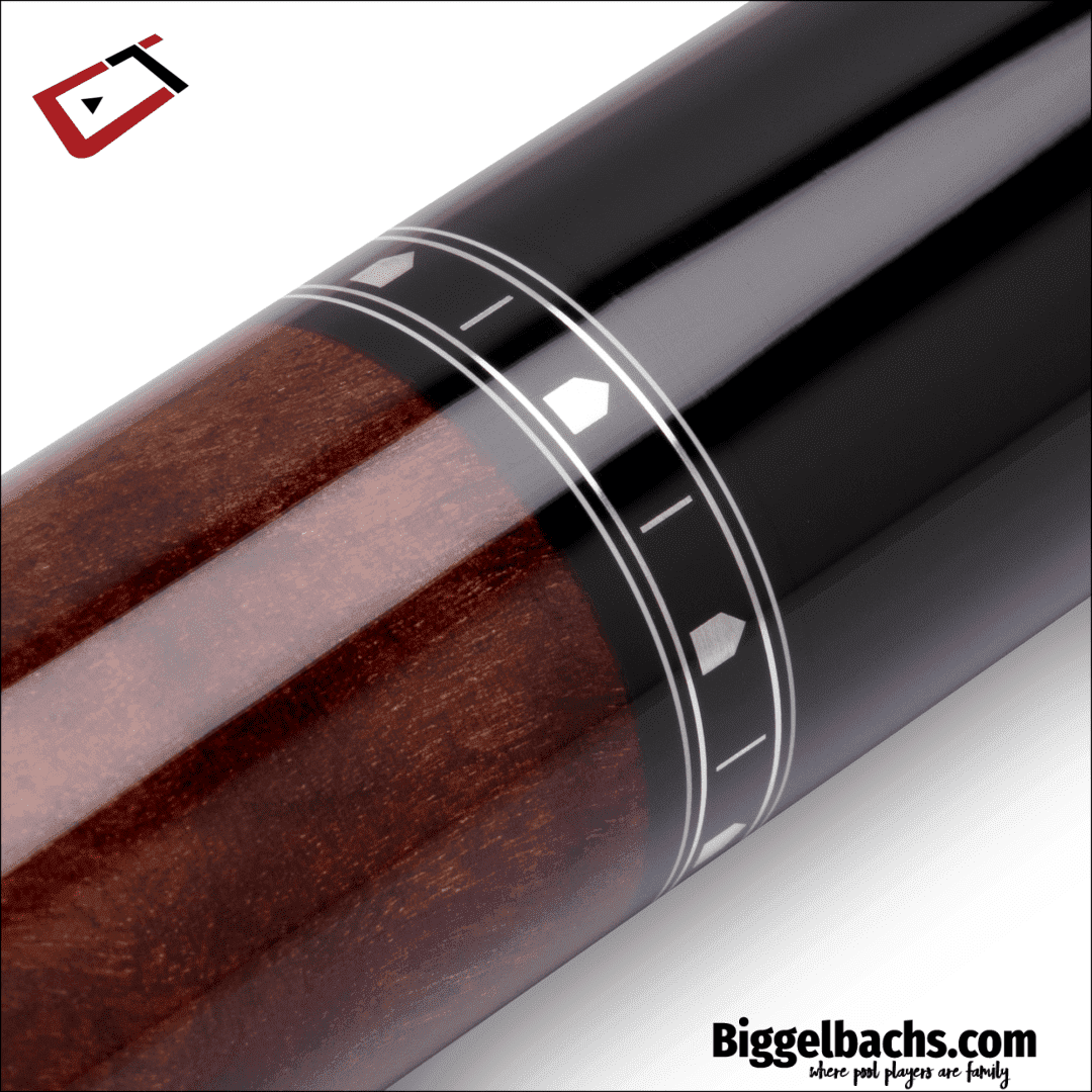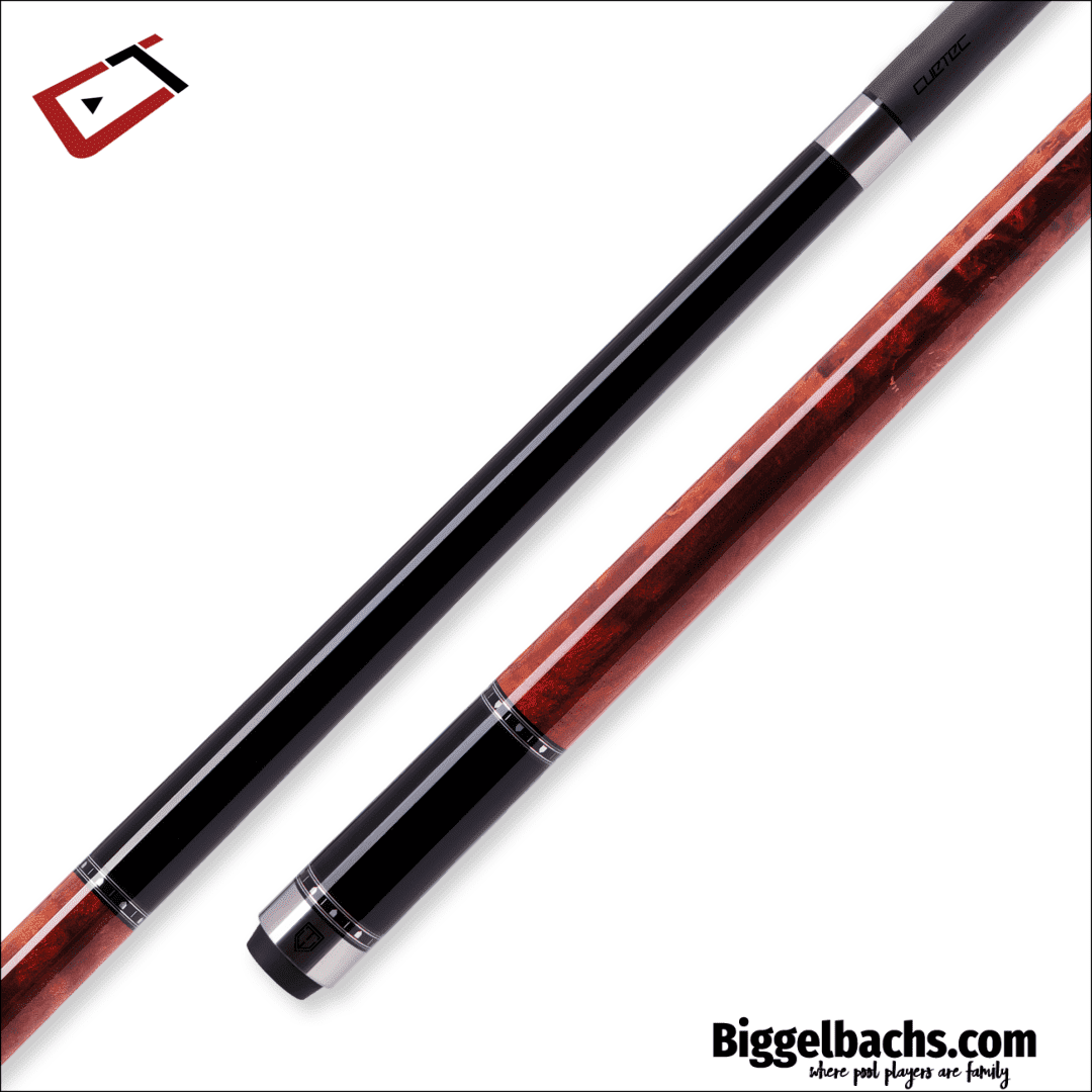 • Merry Widow Design • Highly fi gured and richly stained Truewood Mappa Burl Veneer • A+ grade kiln-dried Canadian Maple Core • Silver Truewood Shield Rings with Creme Accent Rings • Clear-Tec® Epoxy Resin Finish • Cuetec Acueweight Generation II • Duo Extension Ready Bumper • CT Joint Protectors • Cuetec Shaft Cleansing Wipes