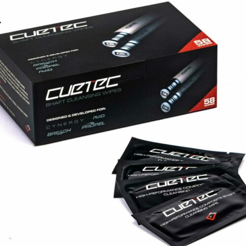 When the pressure is on, dirt, debris, and friction are the last thing a competitor needs on their mind. Cuetec’s shaft cleansing wipes quickly and easily return your Cynergy or AVID shaft surface to their ultra-smooth low-friction high-performance best.