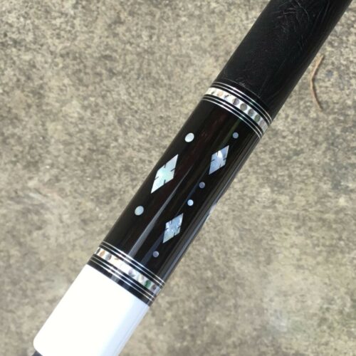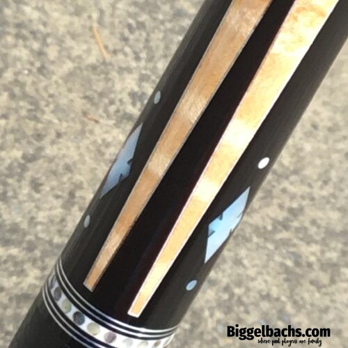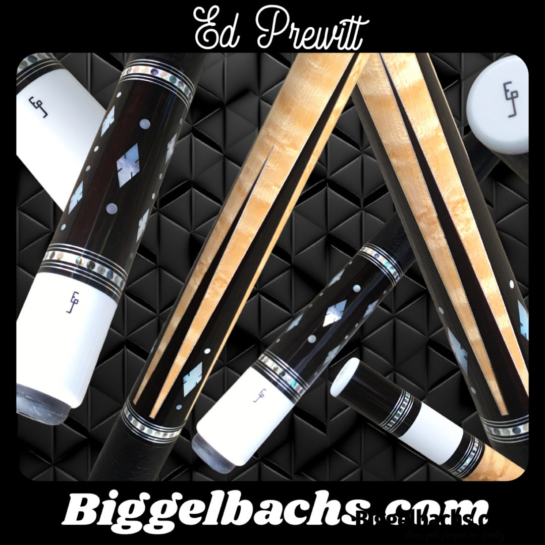 Brand new, absolutely stunning Ed Prewitt. It is quite the challenge to capture the beauty of an Ed Prewitt cue in a picture. Thin silver veneered ebony points are just the start of this understated, timeless piece of art. There are mother of pearl inlays all framed by Ed Prewitt’s signature ring/collar work. Oh, and did we say stunning yet?!