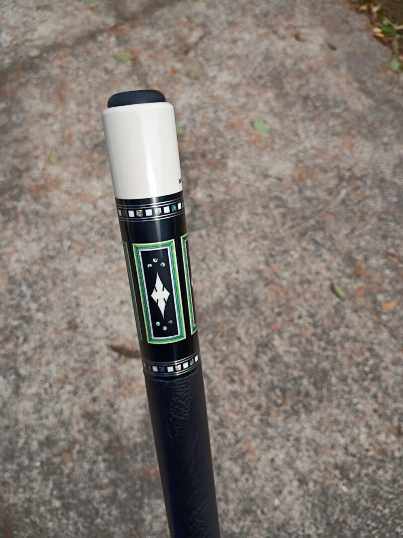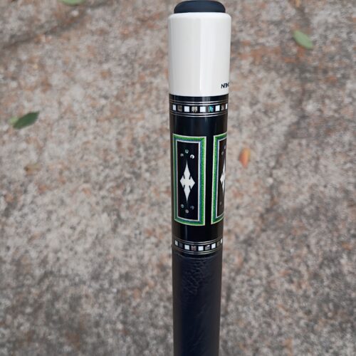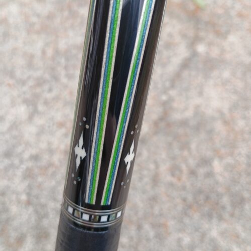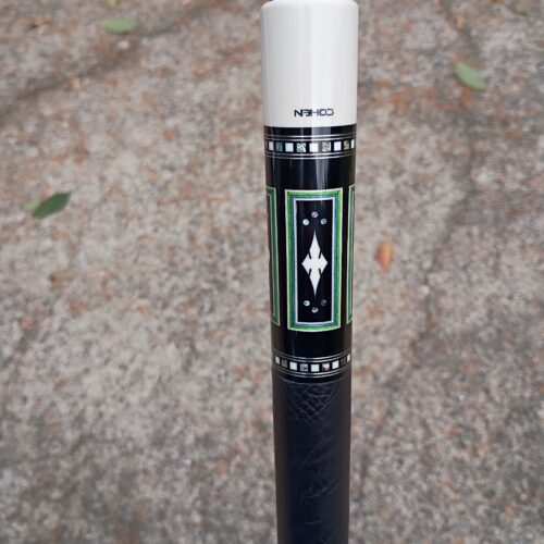 This new Eddie Cohen 4 point cue is stunning to the high, but with a simple elegence that isn’t overpowering! The ebony forearm along with the fancy ringwork throughout the cue makes it really stylish. The genius of Eddie Cohen comes through in the matching collar rings and complementary box designs below the wrap that match the color of the wrap. Cue comes with matching joint protectors.