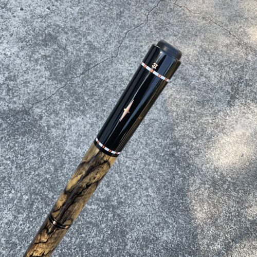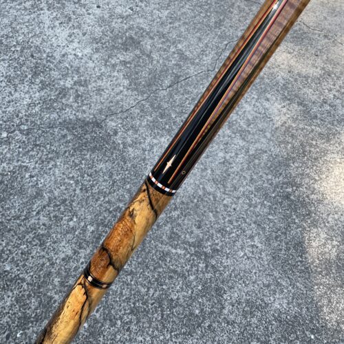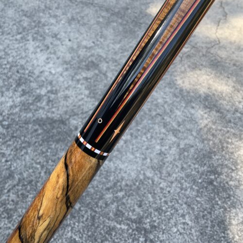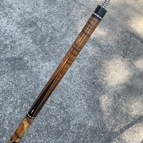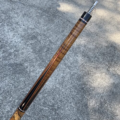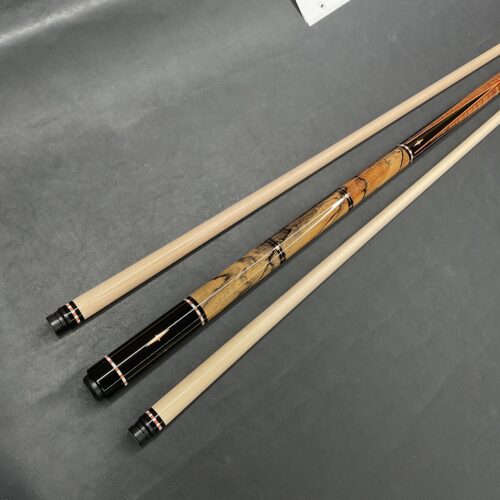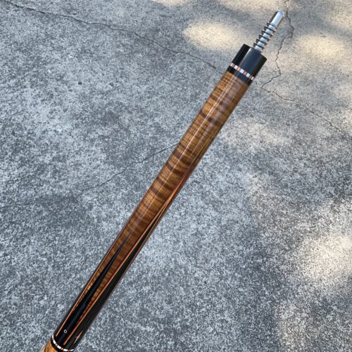 Up for grabs is this brand new unplayed Elliott cue. This 19.2 oz cue features a beautiful figured wrapless handle complemented with copper accents throughout. David Elliott’s attention to detailed craftsmenship really shows in the work he put into this cue. A beauty like this won’t last long.