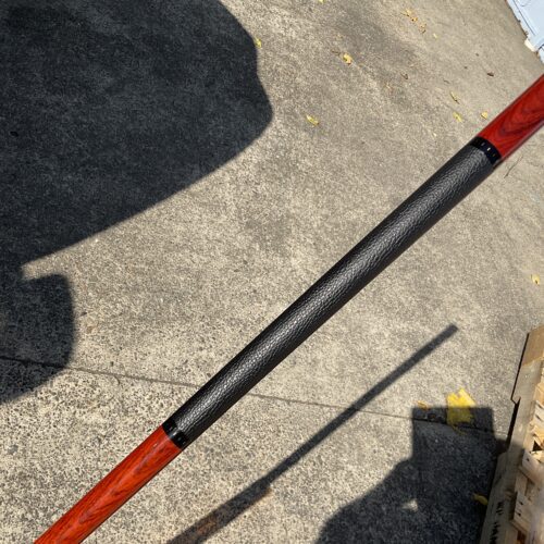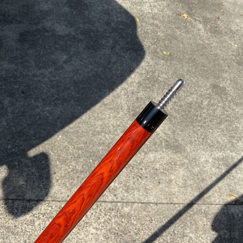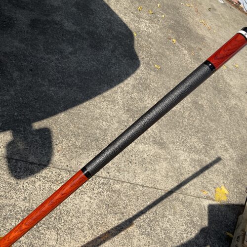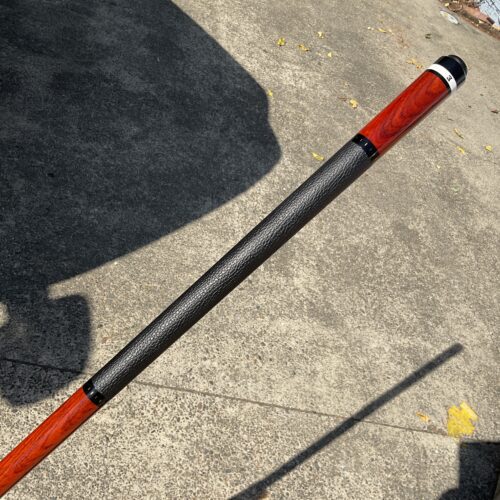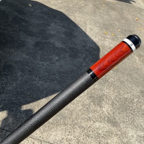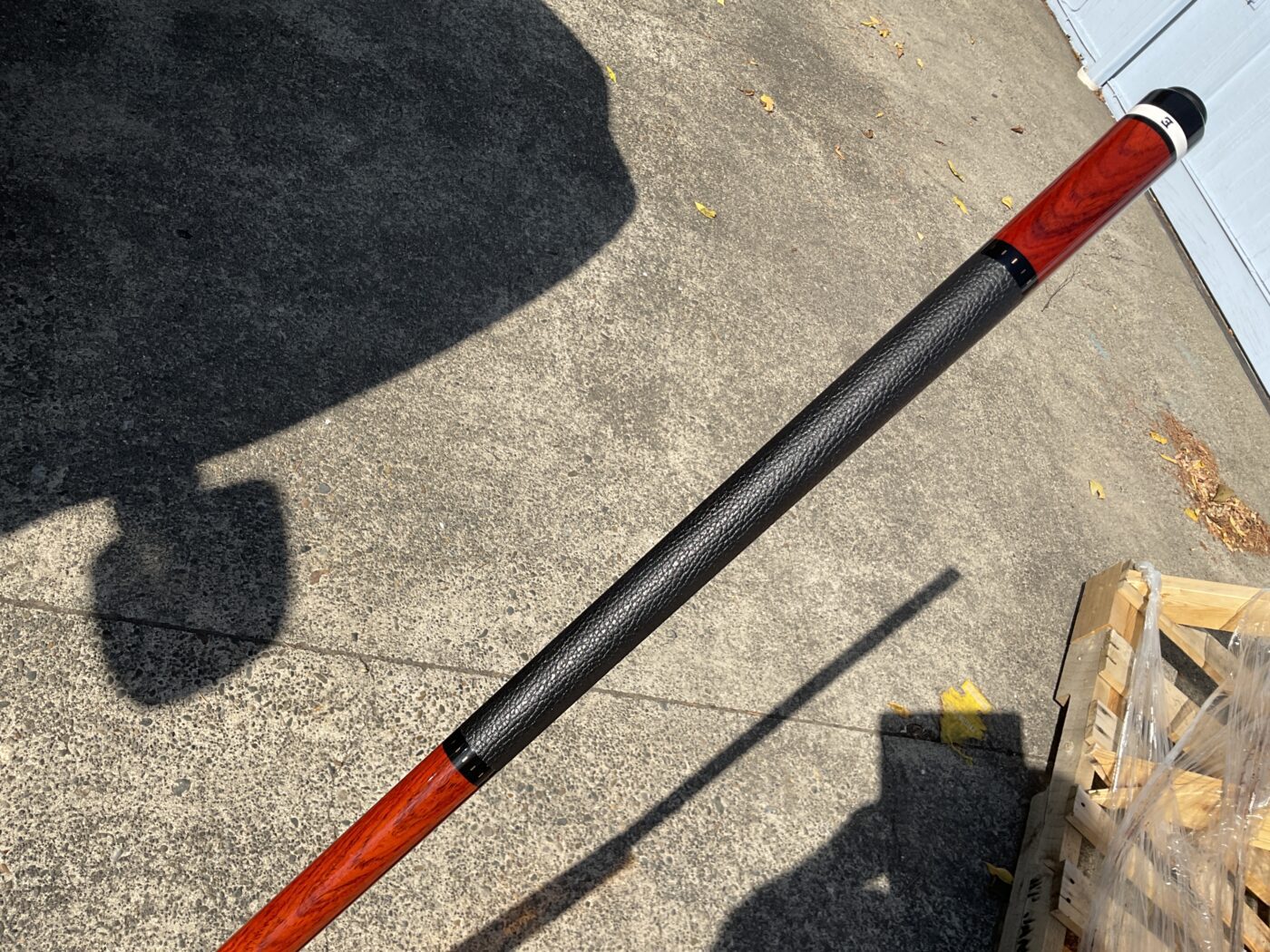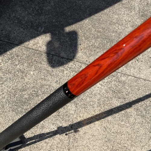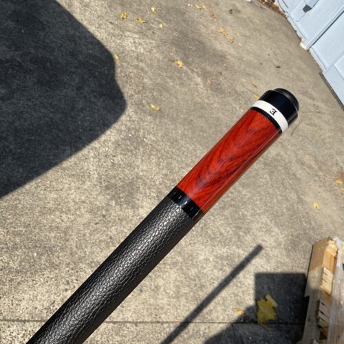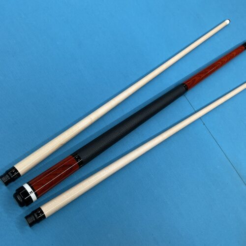 Up for grabs is this brand new unplayed Elliott cue. This 18.9 oz cue features a leather wrap in a Merry widow style with no points. It comes in a 58″ Length and has a phenolic joint. The Radial pin on the joint helps to give it an excellent hit.