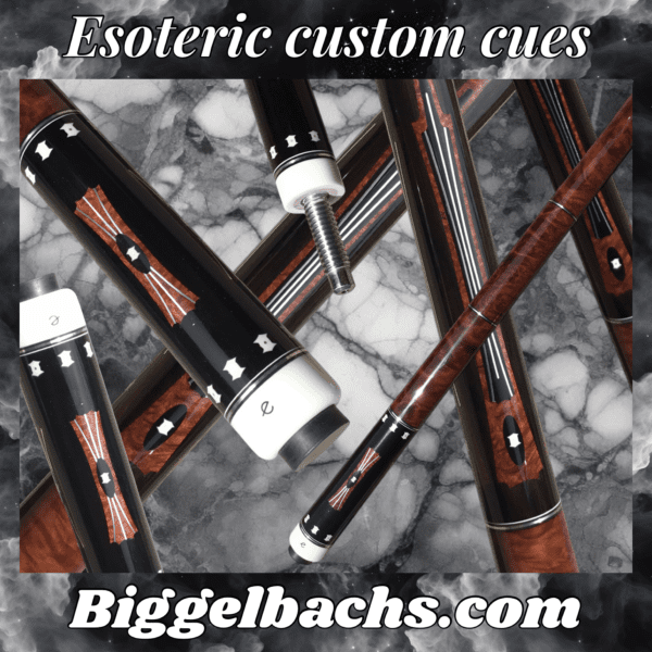 Tags: Biggelbachs, Custom Cues, custom pool cue, Esoteric, hand made pool cues