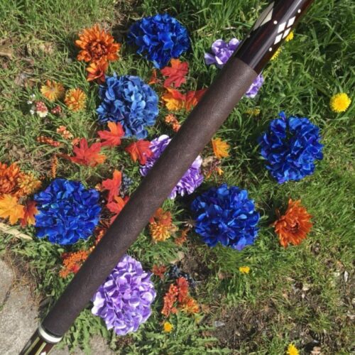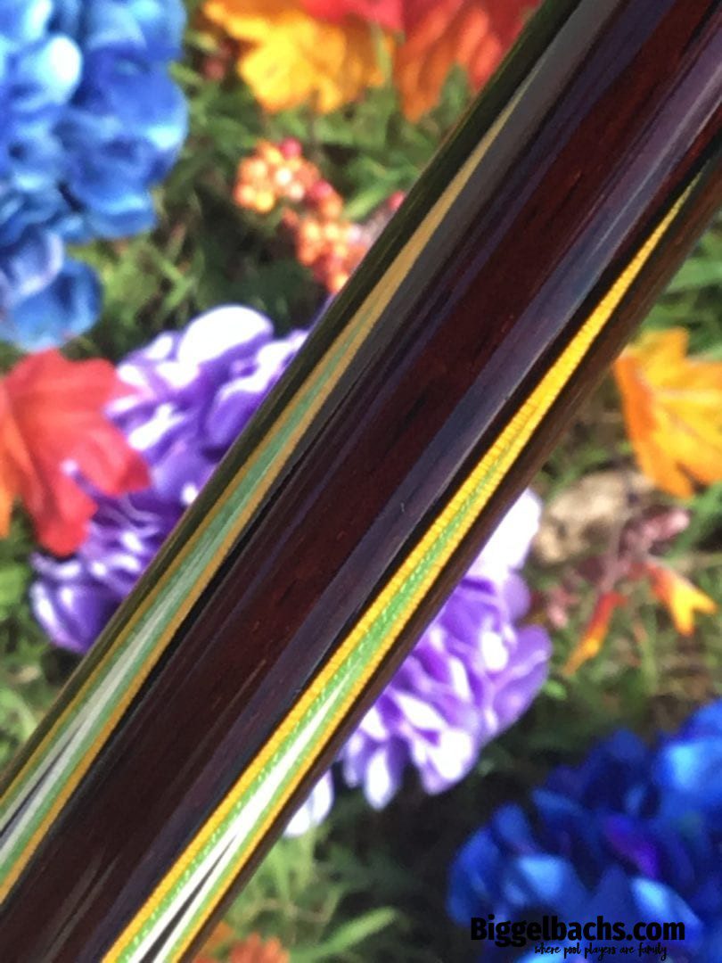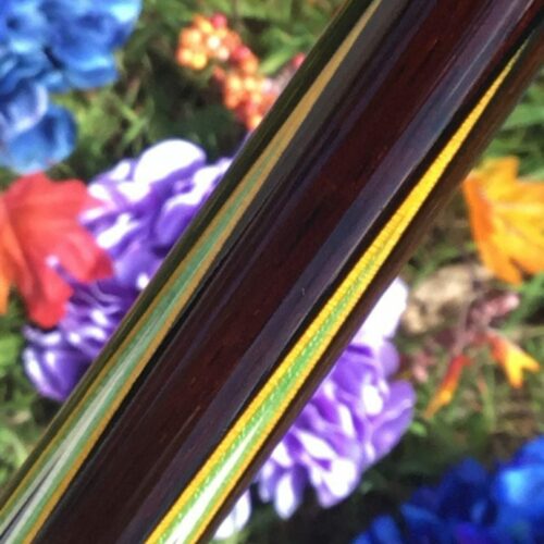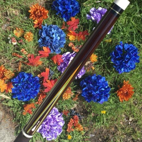 This gorgeous Brazilian Rosewood gem made by Andy Gilbert is a real looker! The cue boasts yellow, green, and white veneers surrounded by the stunning rosewood. Ivory inlays and an exotic elephant ear wrap make this cue a must have for any pool enthusiast or collector.