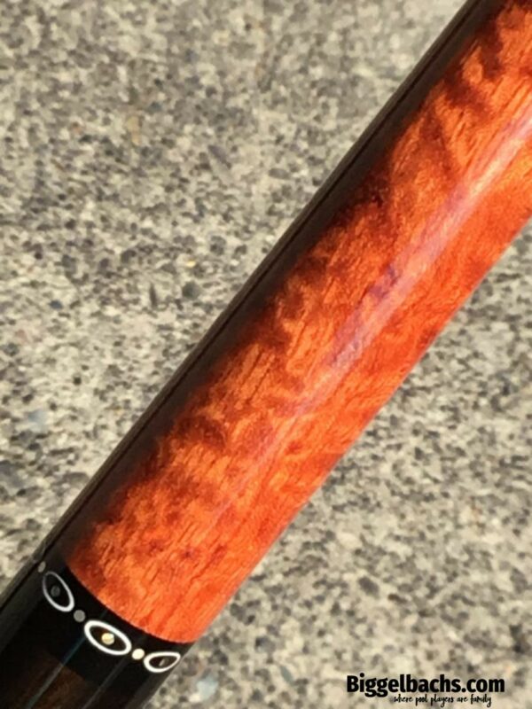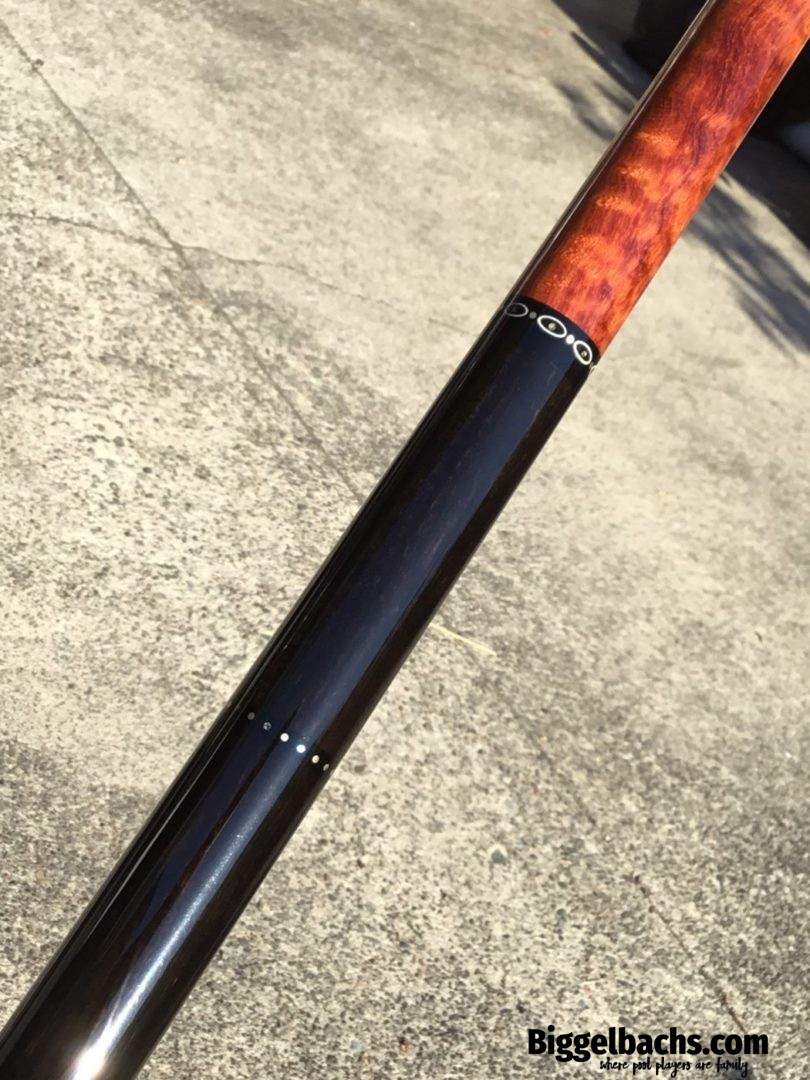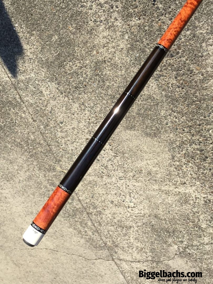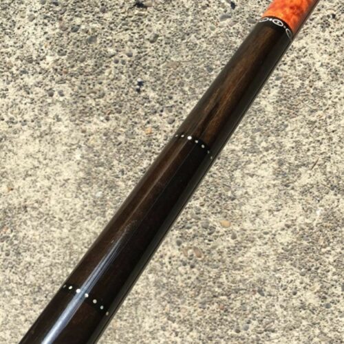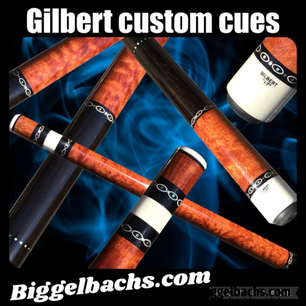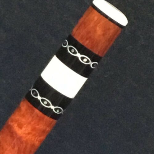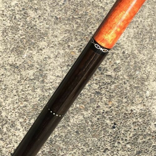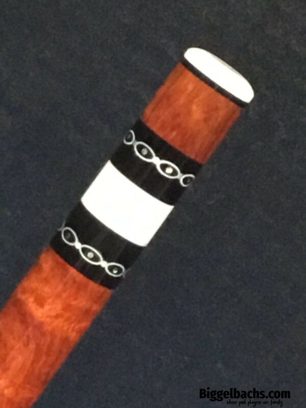 Absolutely stunning no wrap Andy Gilbert cue with unique collar design. This 2017 gem is in near mint condition and even comes with matching joint protectors. The intricate collars and inlays perfectly compliment the burl and ebony “canvas” of this work of art!