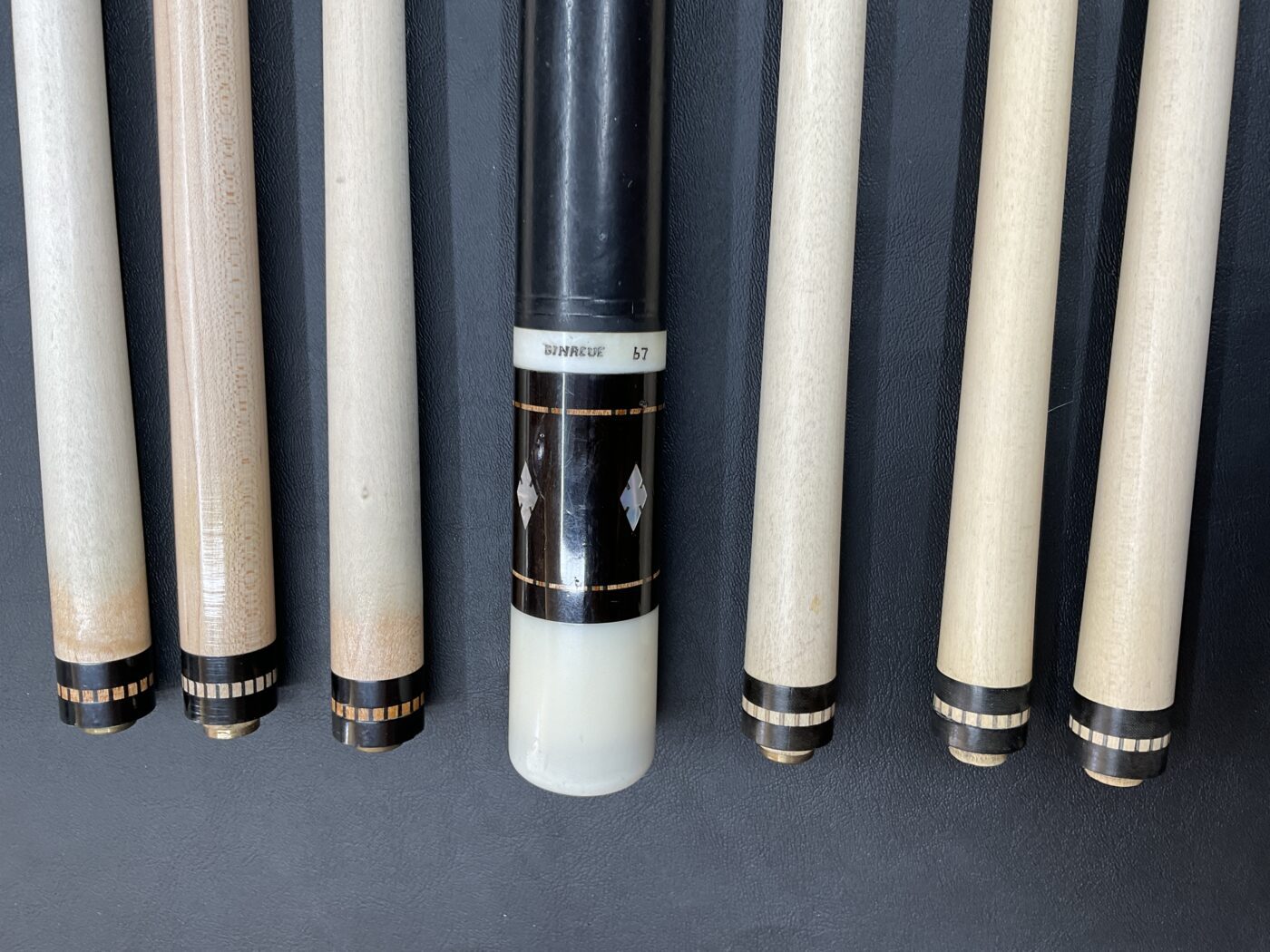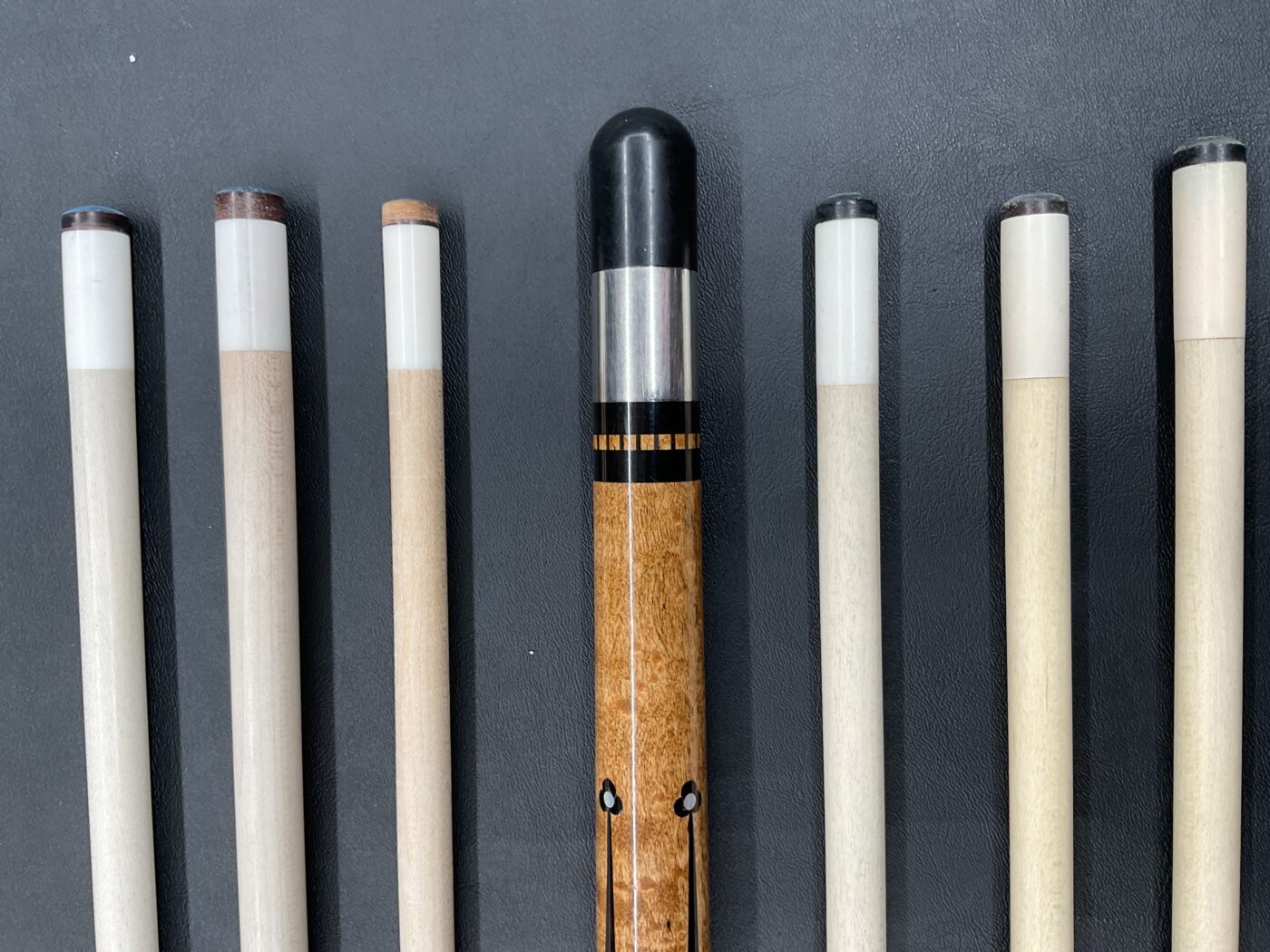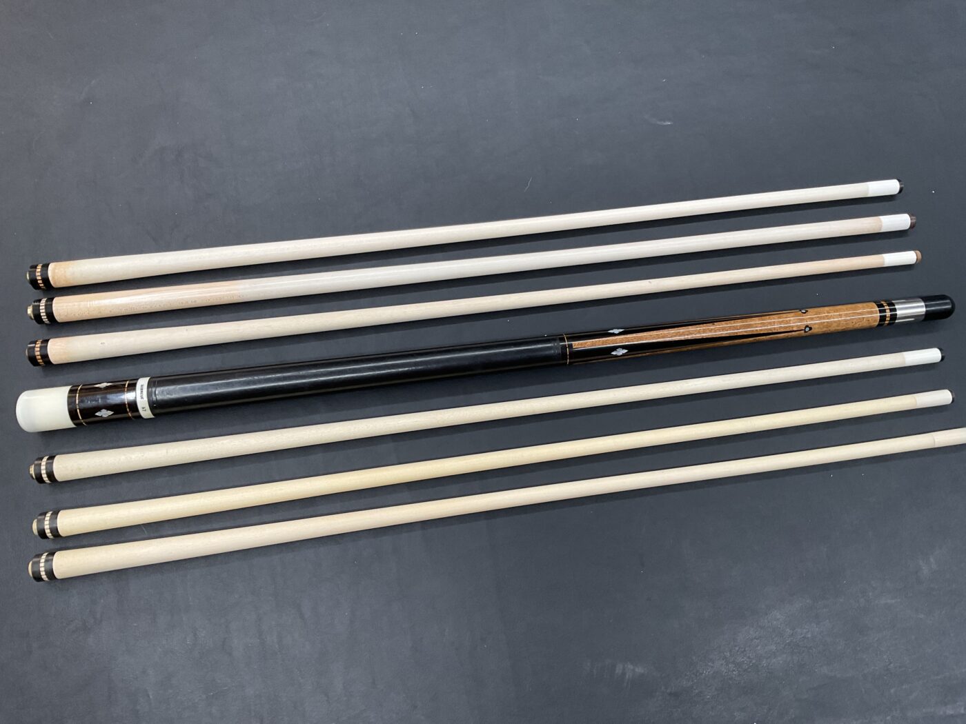 A true antique collectible by the award winning cue-making legend, Ernie Gutierrez. This cue was made in 1967 and features 6 shafts in various condition. This cue would make a great addition to any collection, as well as make for a great playing cue.