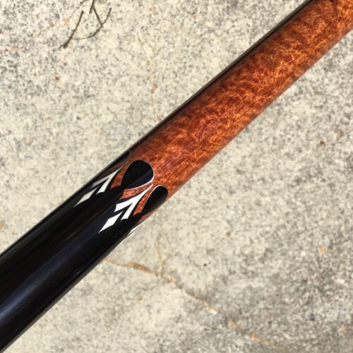 This Jerry McWorter blows Merry Widow out of this world! The burl handle on the deep dark ebony with the silver outline and accents make this one of the classiest cues in existence! And congratulations to Jerry McWorter on his induction to the Custom Cuemakers Hall of Fame, well deserved!!