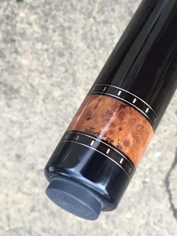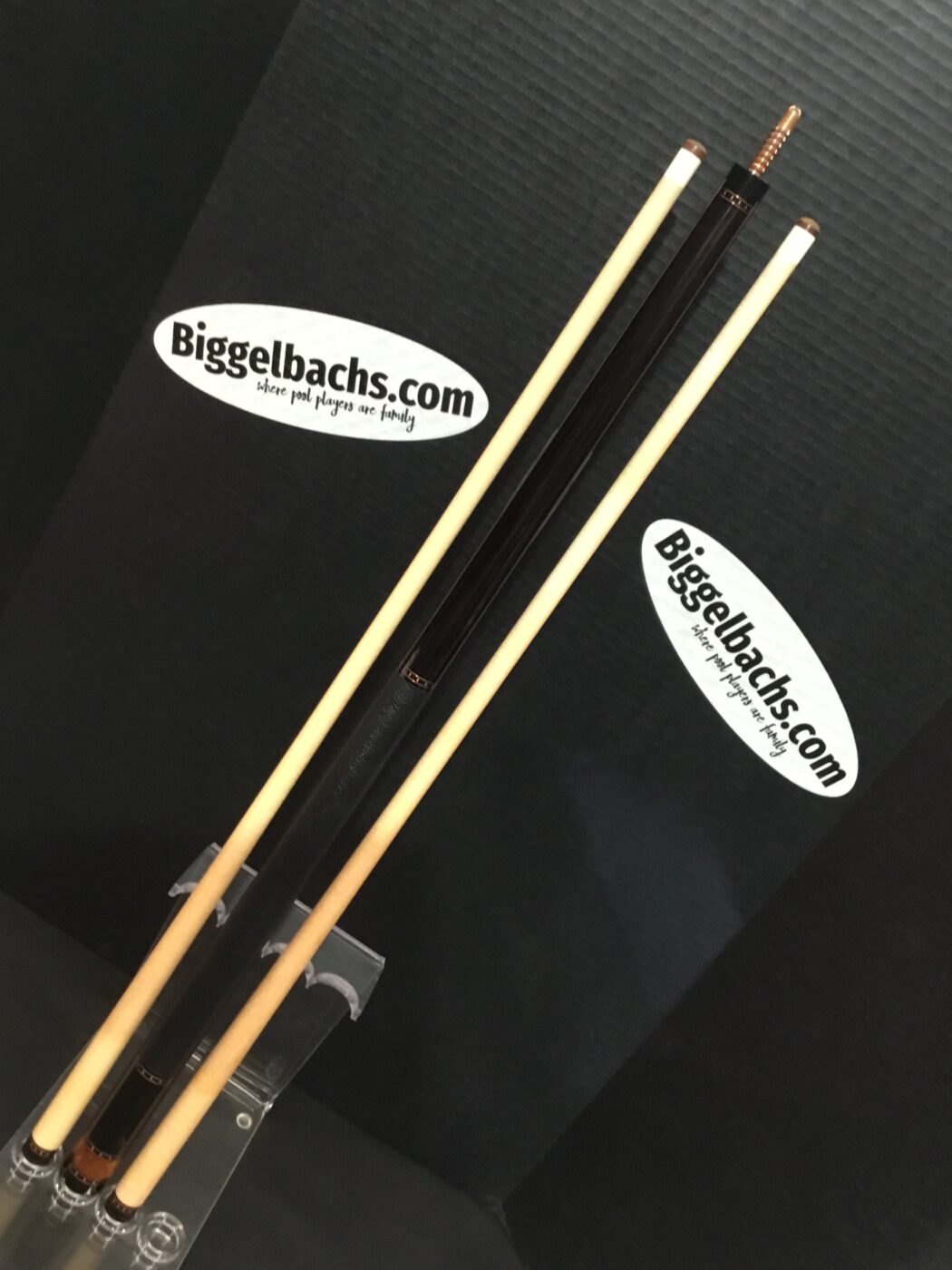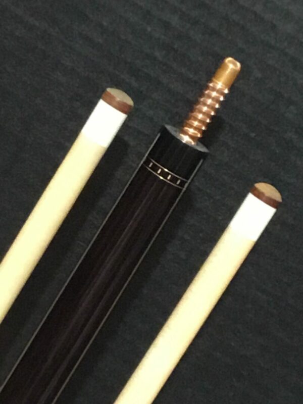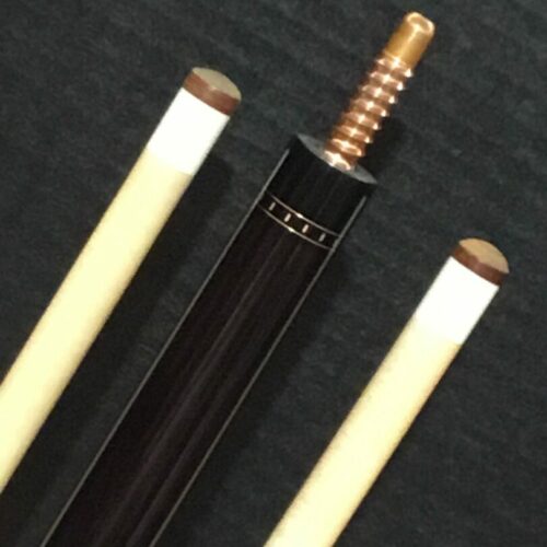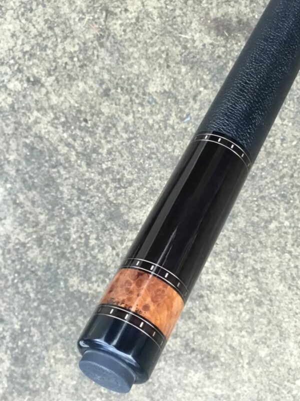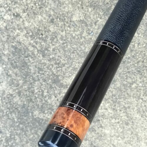 Black beautiful simplicity at its best. This ebony cue with copper collar ring accents and a touch of burl make this cue ideal for a carbon shaft. The leather wrap completes the look and really makes this cue a steal!