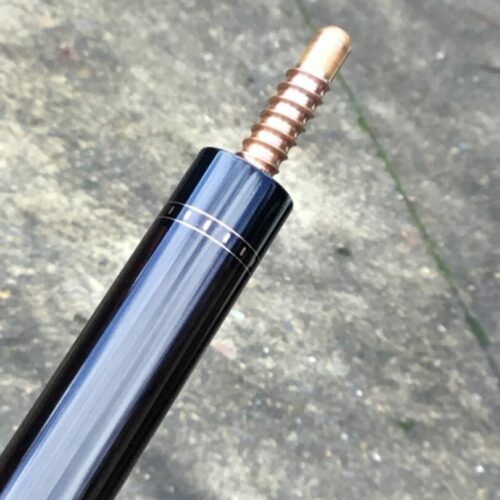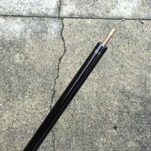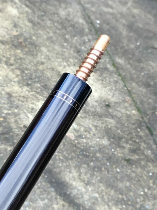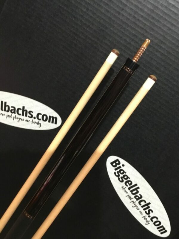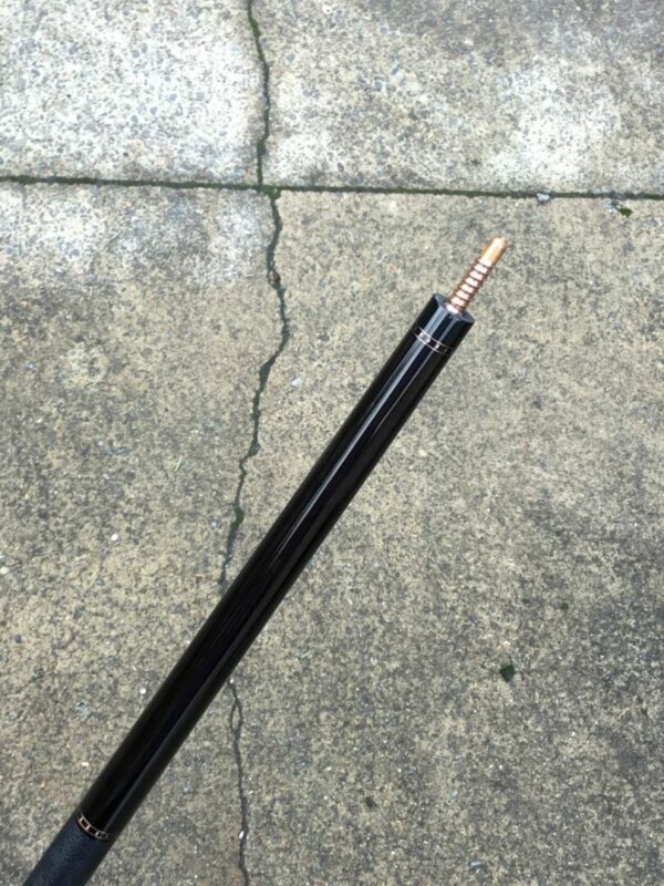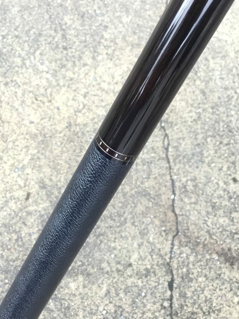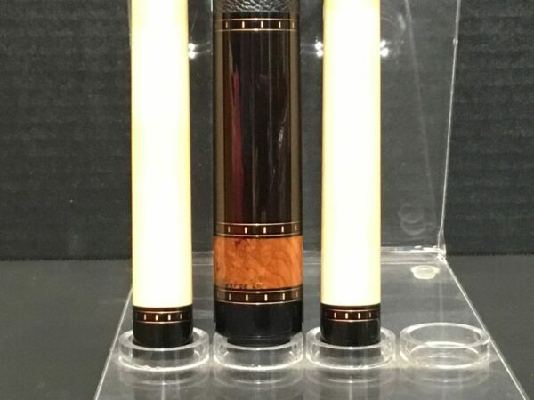 Black beautiful simplicity at its best. This ebony cue with copper collar ring accents and a touch of burl make this cue ideal for a carbon shaft. The leather wrap completes the look and really makes this cue a steal!