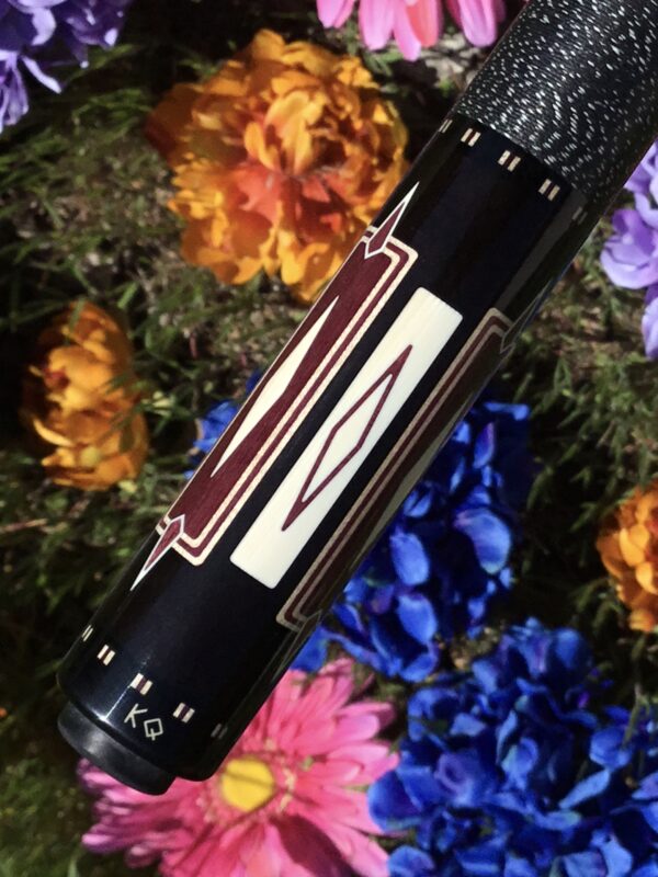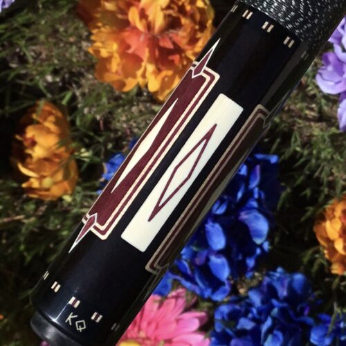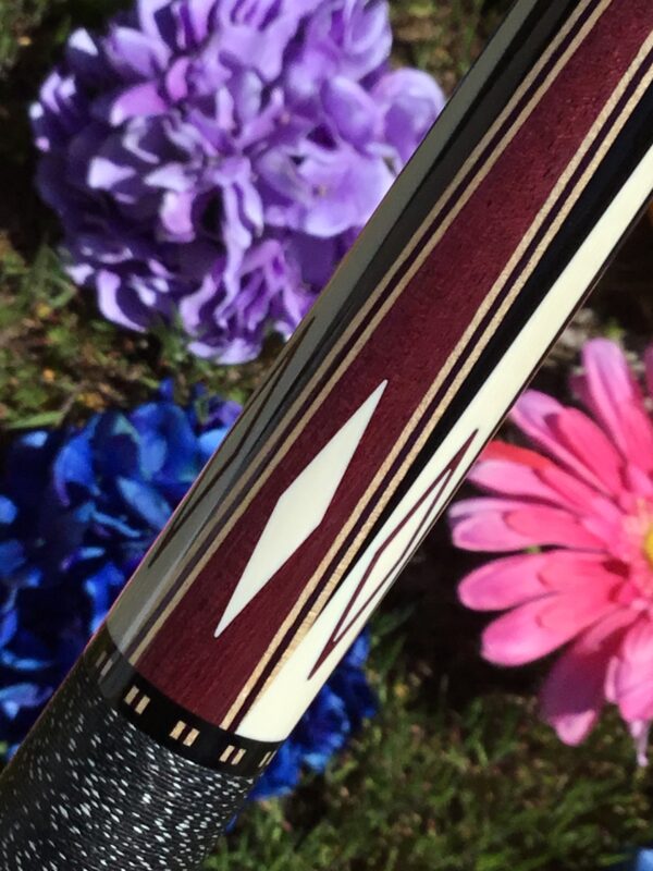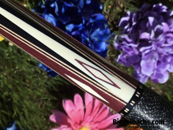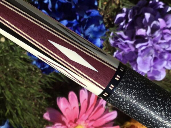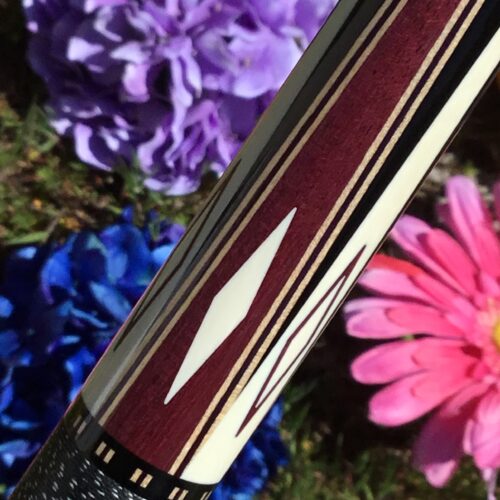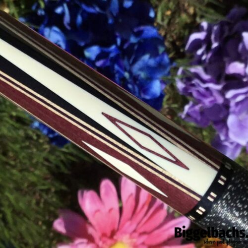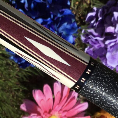 Ebony, Ivory and purple heart go really well together in this Dave Kikel cue. This six pointed cue with a lot of ivory is a real diamond in the rough. If you are looking for value, looks and playability, this cue is for you.