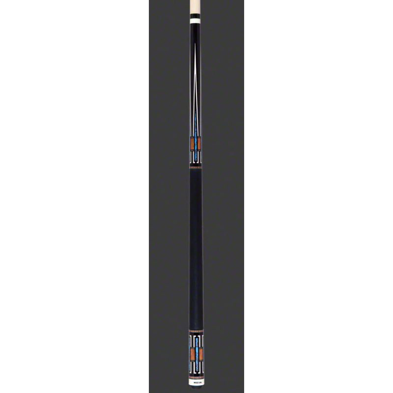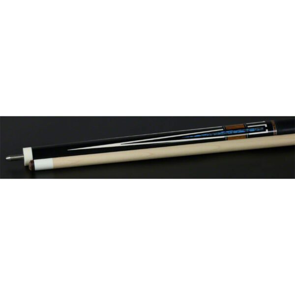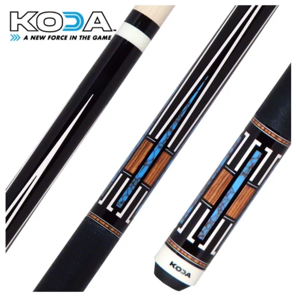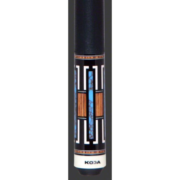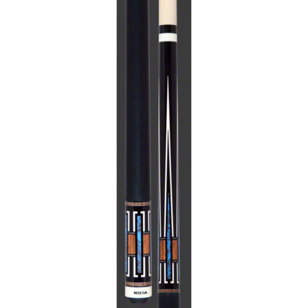 Koda KD51 Pool Cue – Featuring a sleek black-stained forearm, the KD51 showcases a striking 4-point Micarta, Cocobolo, and Blue Recon design. The black-stained butt sleeve mirrors the forearm’s bold aesthetic, creating a seamless look. A black Irish linen wrap ensures a secure, comfortable grip, while the Bocote ring work adds a refined finishing touch to this expertly crafted cue.