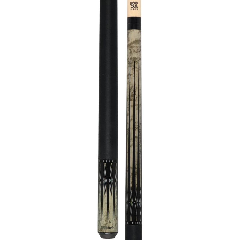 Elevate your game with Koda’s Gray-Stained Maple Pool Cue! Featuring a striking gray-stained Birdseye Maple design accented with black and Abalone points, this cue exudes bold style. The 29″ solid maple shaft, 12.5mm tip, and black Irish linen wrap ensure a smooth, secure grip for optimal performance. Step up your game with this dynamic and eye-catching cue!