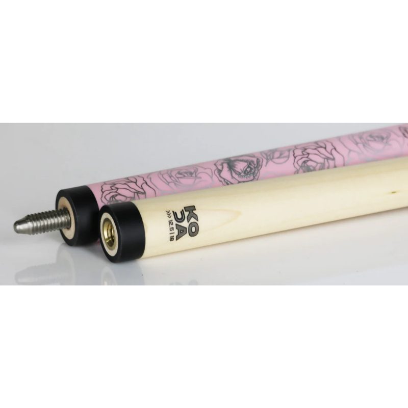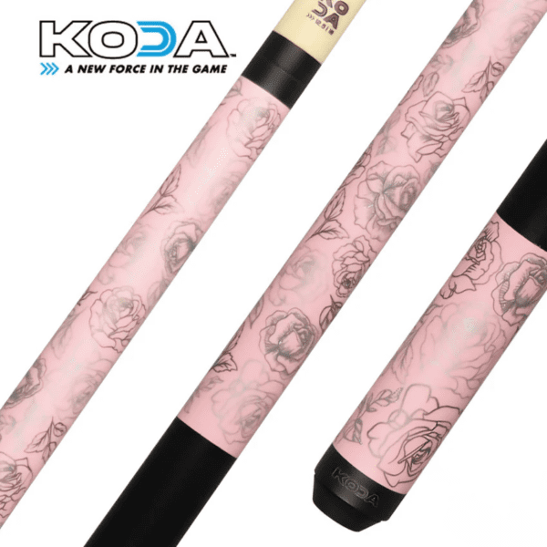Dominate the game with the KODA KDV30PK Pool Cue, showcasing a striking pink rose graphic and a sleek matte finish. Designed for precision, it features a 12.50mm maple shaft and a black Irish linen wrap for ultimate control. Make bold, confident shots and stand out with this powerful and stylish cue!