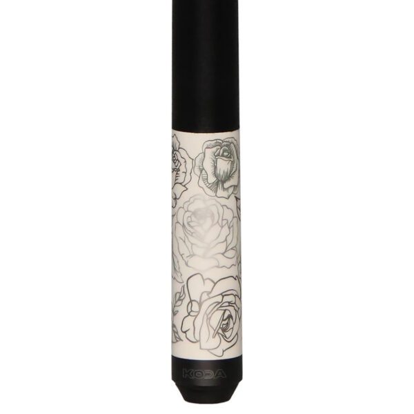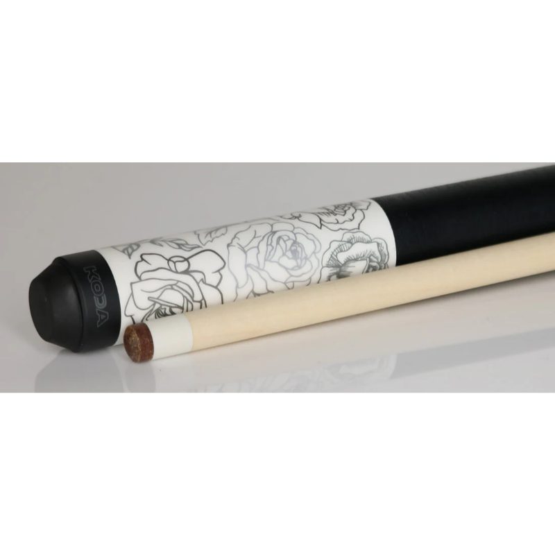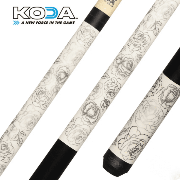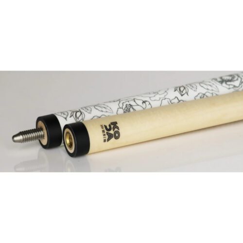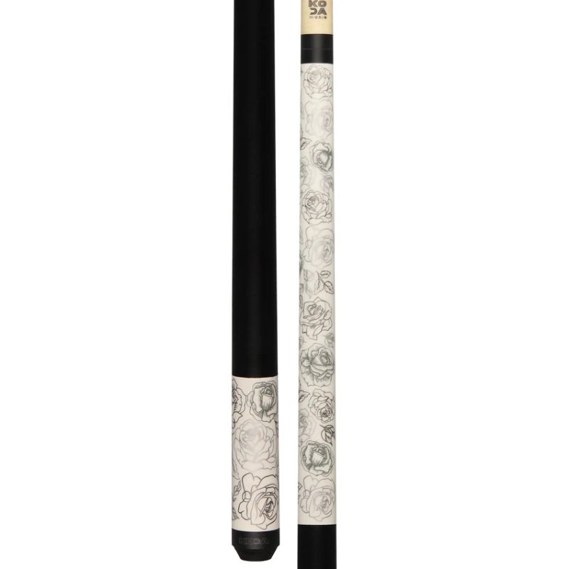 Command attention with the KODA KDV30WH Pool Cue. Featuring a bold white rose graphic and a sleek matte finish, this cue is designed to make an impact. Its 12.50mm maple shaft and black Irish linen wrap provide exceptional control for precise, powerful shots. Elevate your game with confidence and style.