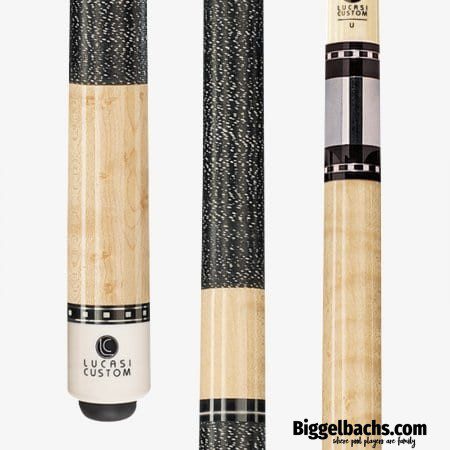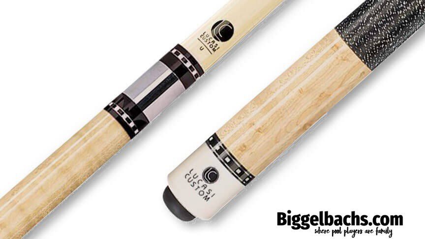 This classically-styled Lucasi Custom jump break cue features a natural Birdseye Maple forearm and butt, double black & white double-pressed Irish linen wraps, two quick-release Uni-loc® joints, and high-impact ferrule topped by a super-hard bakelite tip.