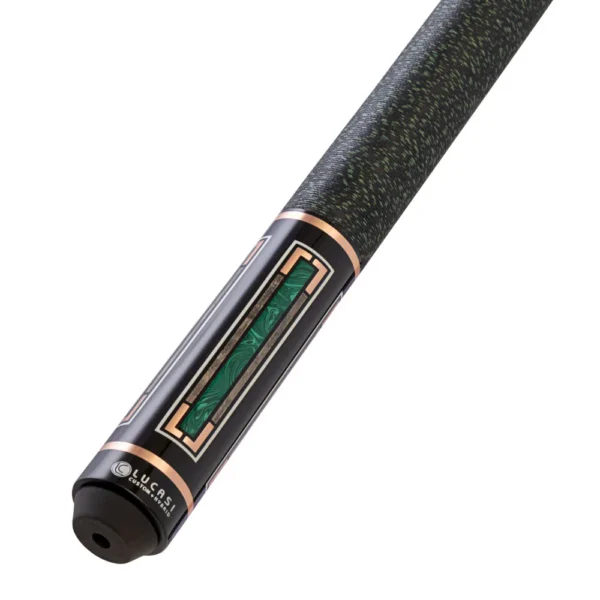 Elegance meets precision with this Lucasi Art Deco Rose Gold Series Cue. Featuring a Quick-Release Uni-loc® joint and an 11.75mm Zero Flexpoint® Slim Low Deflection Shaft, it’s designed for ultimate accuracy. The Kamui Pro Soft Tip delivers unmatched control, while the black/green Irish linen wrap provides a secure and stylish grip. Finished with stunning grey wash stained birdseye maple, malachite, and rose gold inlays, this cue is a masterpiece on and off the table.