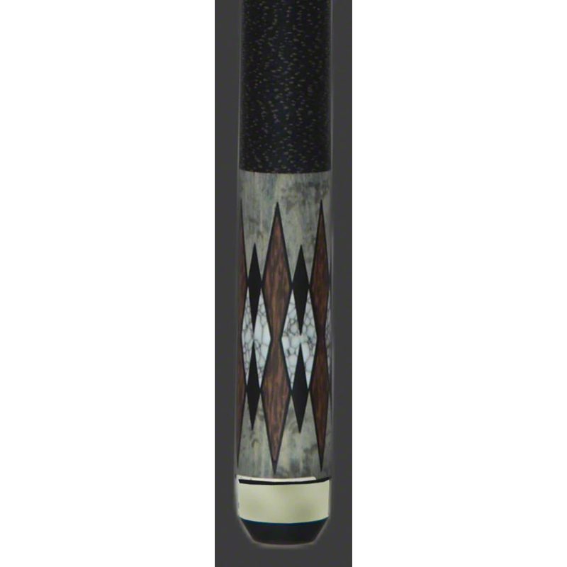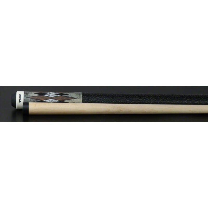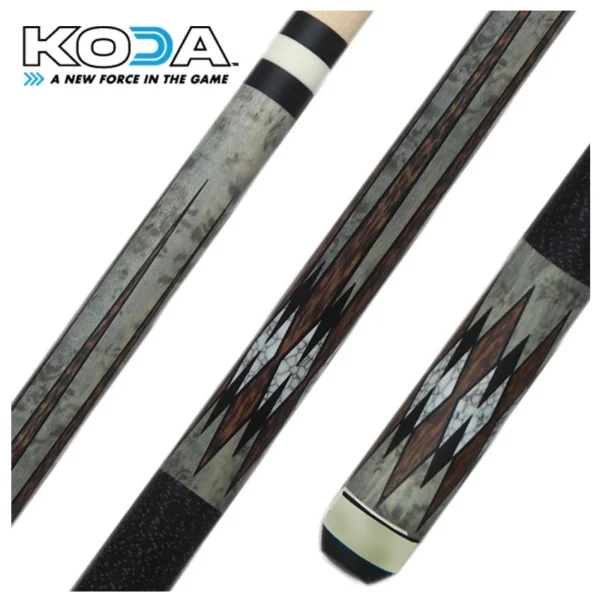Koda KD52 Pool Cue – Designed for precision and style, the KD52 features a sleek grey-stained forearm accented by a striking 4-point Micarta and Cocobolo design. The grey-stained butt sleeve mirrors the forearm for a cohesive, elegant look. A black Irish linen wrap provides a secure, comfortable grip, making this cue a perfect blend of performance and sophistication.