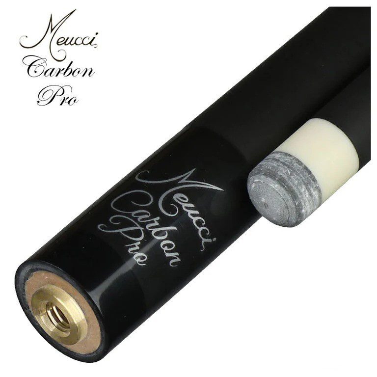 Meucci Carbon Pro 5/16 x 14 joint cue shaft. Available at 29″ and 30″ length the Carbon Pro shaft has a pro taper with virtually no rise at 15 inches. The most common cues this shaft will fit on are Joss, Schon, Espiritu, and many others that use 5/16 x 14. Each Carbon Fiber shaft features Meucci’s lightweight front-end construction. Unlike other Carbon shafts which have a distracting hollow sound, Meucci’s Carbon Fiber Pro is not hollow at any point in the construction. The 3/4″ long ferrule, not only aids in aim contrast and depth perception, but it also provides a more familiar and stable platform for tip maintenance and replacement over the life of the shaft.
