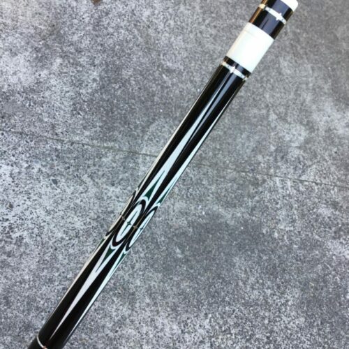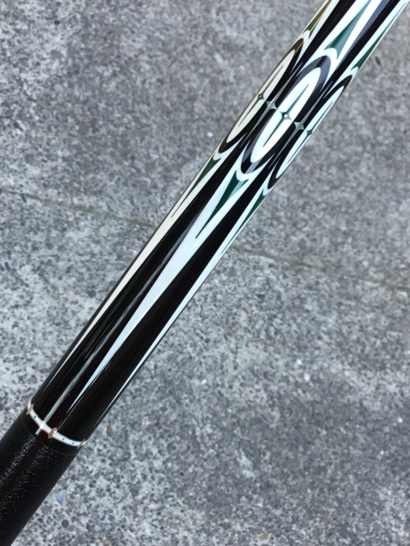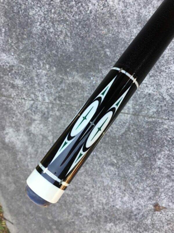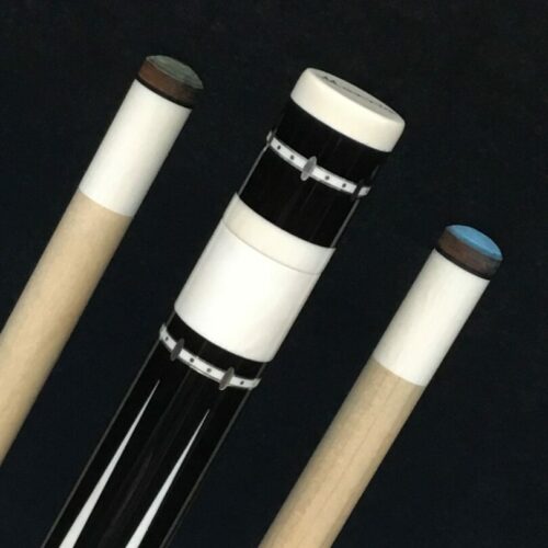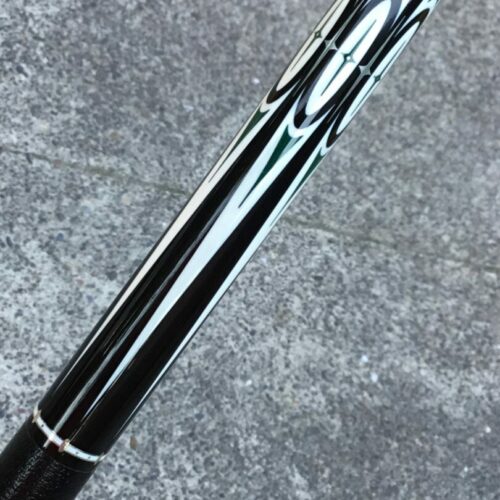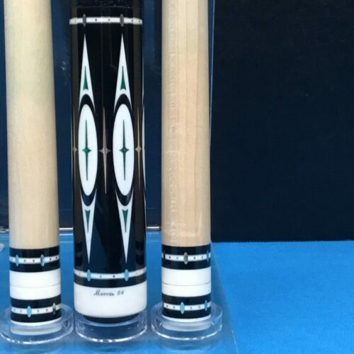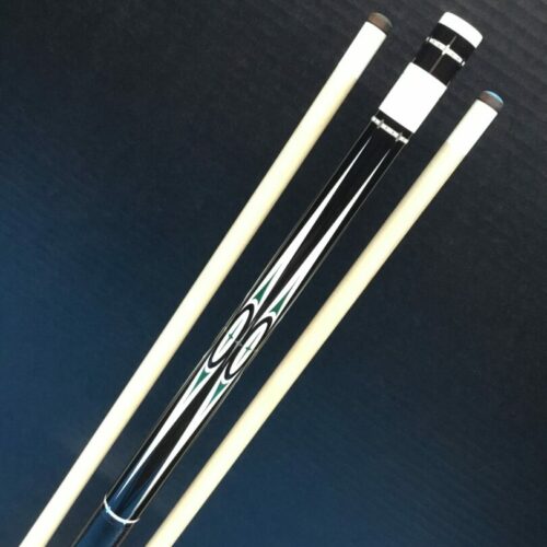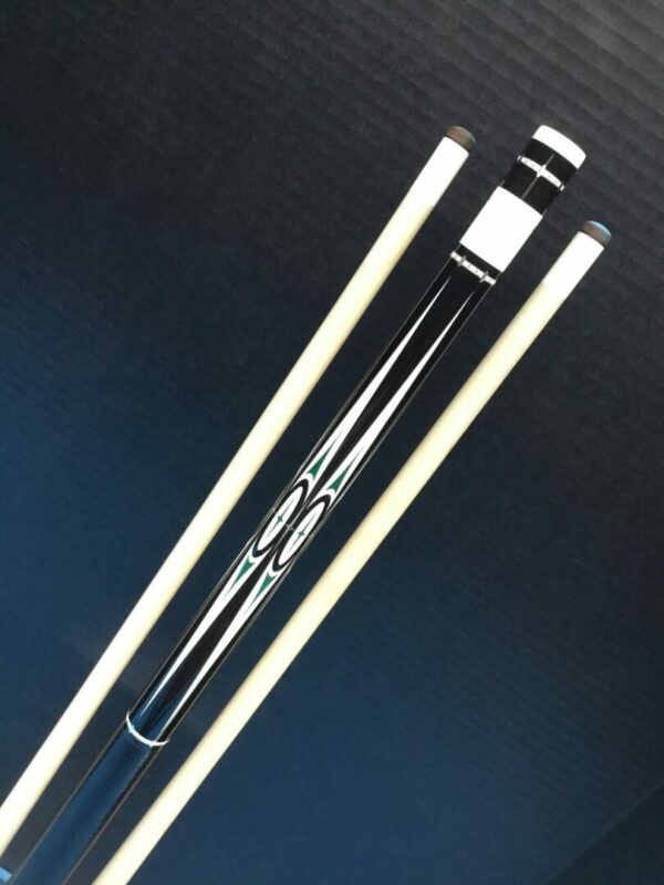 This cue is an absolute show stopper! It is a juiced up take on a tuxedo that stretches the design limits in the classiest way imaginable. It boasts floating points, joint and ferrules in natural material but the intricate details of silver and malachite are discovered throughout the build. You will find new things to appreciate about this piece of art for years to come! Cue comes with matching joint protectors.