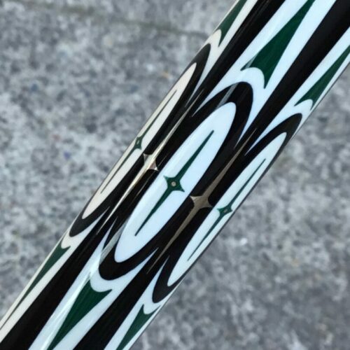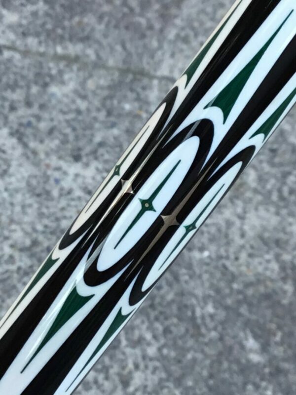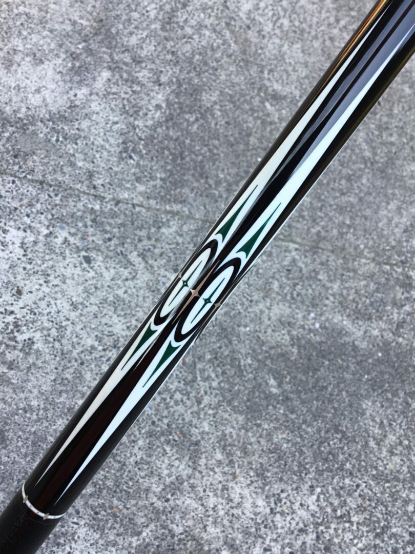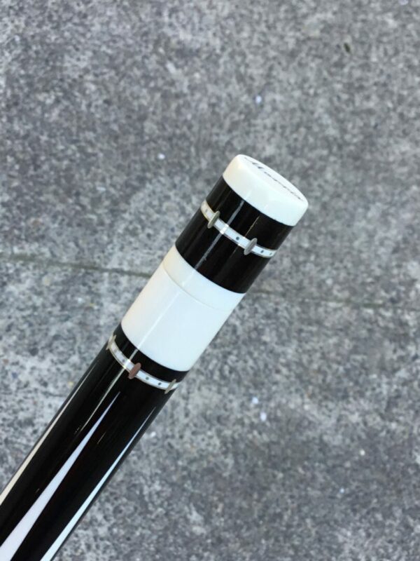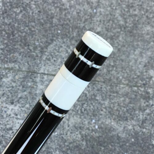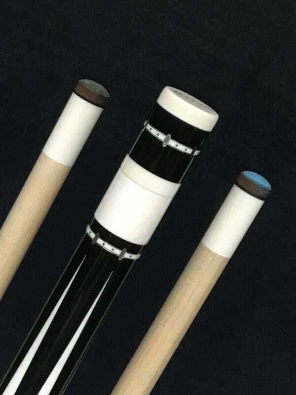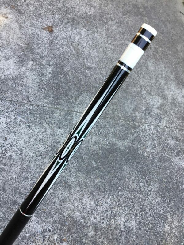 This cue is an absolute show stopper! It is a juiced up take on a tuxedo that stretches the design limits in the classiest way imaginable. It boasts floating points, joint and ferrules in natural material but the intricate details of silver and malachite are discovered throughout the build. You will find new things to appreciate about this piece of art for years to come! Cue comes with matching joint protectors.