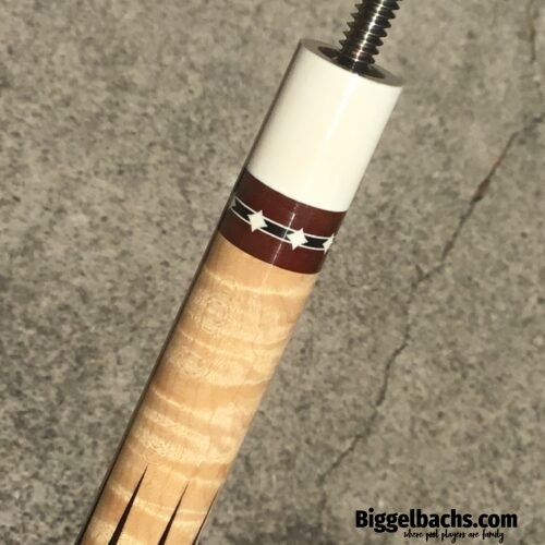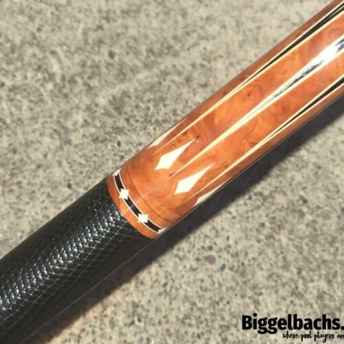 Recut points and incredible Amboyna Burl make this one very special Mottey cue. The inlays in this build are all natural material as well, along with the ferrules and joint. With all the looks and like new condition, this one won’t last!