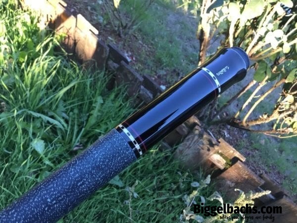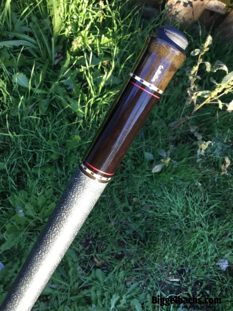 This is a classic piece by the late Perry Weston with his signature flared butt cap. There are 4 ebony points on maple with 4 veneers and Irish linen wrap. Don’t let this hard-to-find gem escape your grasp!