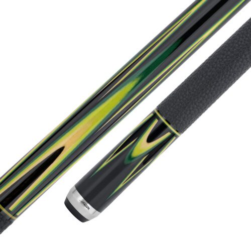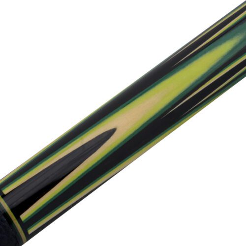 Black painted Maple forearm and butt sleeve with 8 spliced points; 4 long spliced points of black, light green, natural maple, and green as well as 4 butterfly points with the same color scheme