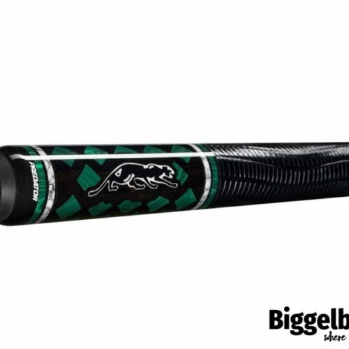 Revel in the artistry of the majestic Śurutē Panthera special edition Predator cues. Designed in partnership with Jacoby, these Panthera cues feature Ebony and Curly Maple wood with markings as unique as the predators that inspired them. Each cue is adorned with White Turquoise, Malachite, Micarta and Rose Gold accents. Limited to only 100 of each model, individually signed and numbered. A cue whose beauty will leave others green with envy.