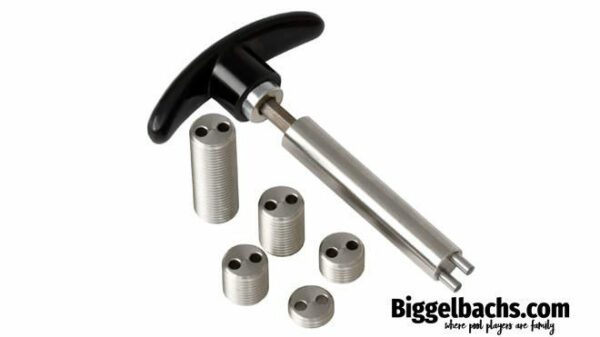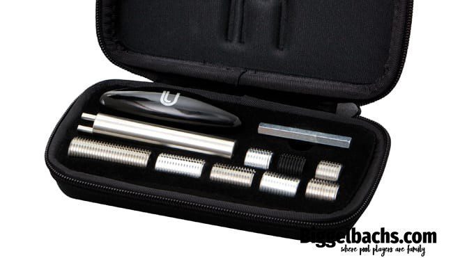 The Uni-Loc® Weight Cartridge Kit lets you fine-tune the weight of your cue within a tenth of a ounce. Eight different weights, ranging from 0.1 oz. to 2 oz., give you up to 30 possible weight combinations for unmatched precision. The versatile installation tool has dual prongs that interlock with each weight and a detachable handle. The tool can be used with the handle for easy on-the-go tuning, or with a drill bit for lightning fast tuning at home.