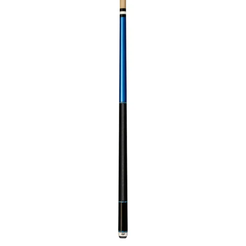 This modern traditional Rage cue features 100% Hard Rock Maple construction with Blue Metallic Paint forearm w/ Blue Recon graphic rings, Implex joint and solid black pressed nylon wrap.
