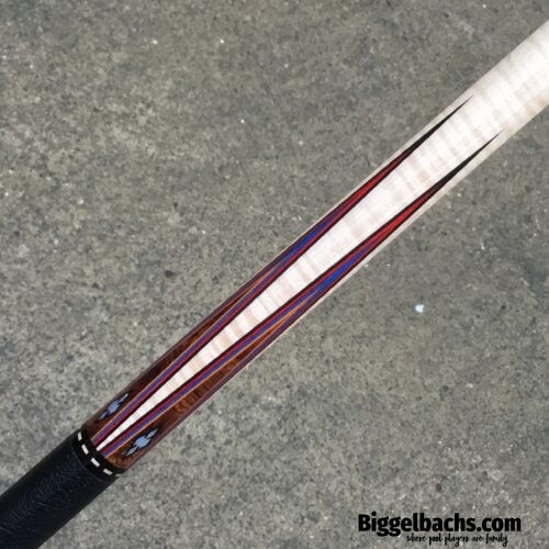 These series of cues that Bob Runde built using Honduran Rosewood are very special. The Honduran Rosewood is incredibly figured and marbled in color giving it “glimmerish” and shimmering kind of look, kind of holographic. This 4 point beauty is classic Runde and the photos don’t do the colorful veneers the justice they should have. This new cue comes with two original maple shafts like most Runde cue, see full spec above!