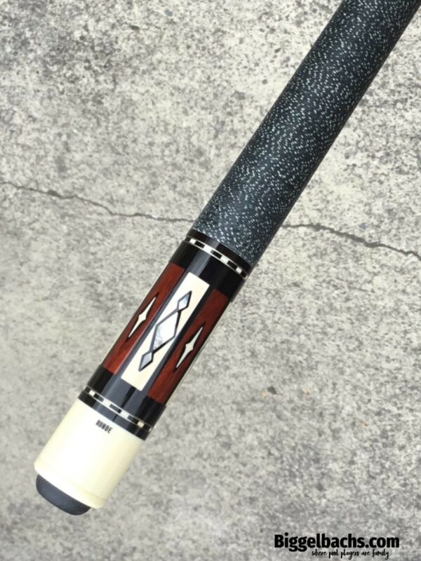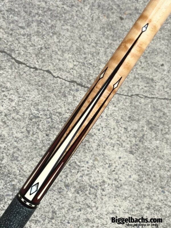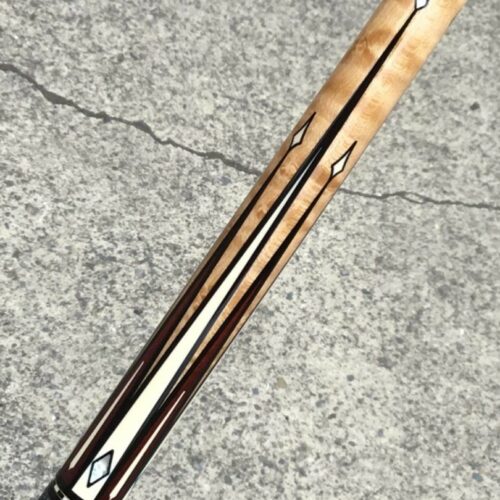 Here we have another Runde custom cue with Bob’s magic touch! These high-low points with fancy boxes and inlays make this an incredibly striking cue.